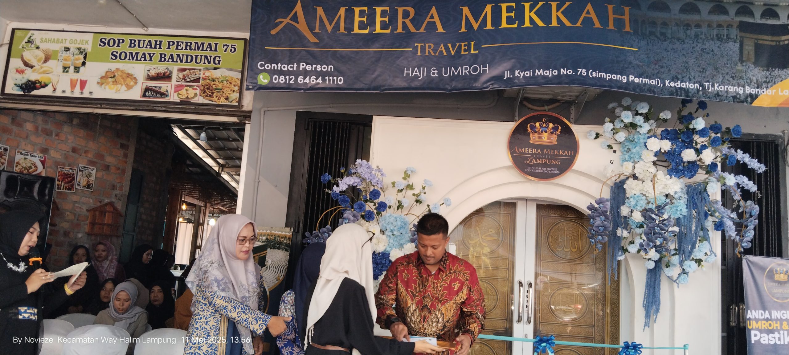 Peresmian cabang baru Ameera Mekkah di Bandar Lampung digelar dalam acara Grand Opening yang berlangsung di kantor Jl Kimaja No 57 Kecamatan Kedaton, Minggu (11/05/2025) dan secara langsung diresmikan oleh owner Salman Ponimin,Lc didampingi Manager Cabang Ameera Mekkah perwakilan Lampung Ibu Istiqomah.