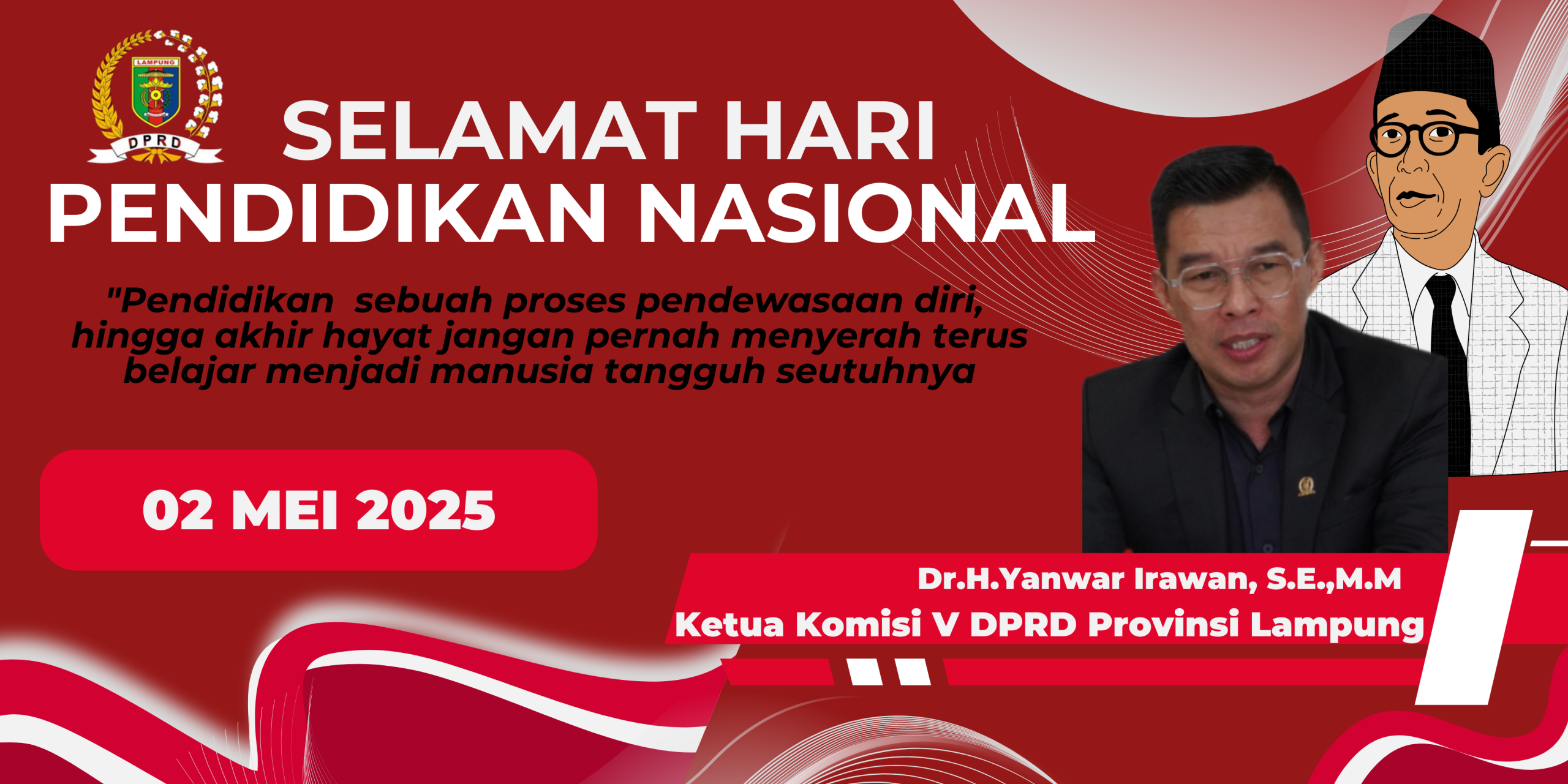 Ketua Komisi V DPRD Provinsi Lampung Mengucapkan Selamat Hari Pendidikan Nasional 02 Mei 2025Novis PawarmanMay 1, 2025Advertorial212 Views Post Views: 212 Don't MissDijual Cepat Tanah Pekarangan di Metro TimurBapenda Provinsi Lampung Mengucapkan Dirgahayu Republik Indonesia Ke-80Nikmati Flash Deal Spesial Kemerdekaan dari Holiday Inn Lampung Bukit Randu Yayasan Muhammad Lathif Rumah Bagi Tumbuh Kembangnya Generasi Insani Cerdas dan BerkarakterAmeera Mekkah Buka Perwakilan Cabang Lampung berkomitmen Pasti Kadis Perkim Kota Bandar Lampung Mengucapkan Selamat Hari Pendidikan Nasional 02 Mei 2025