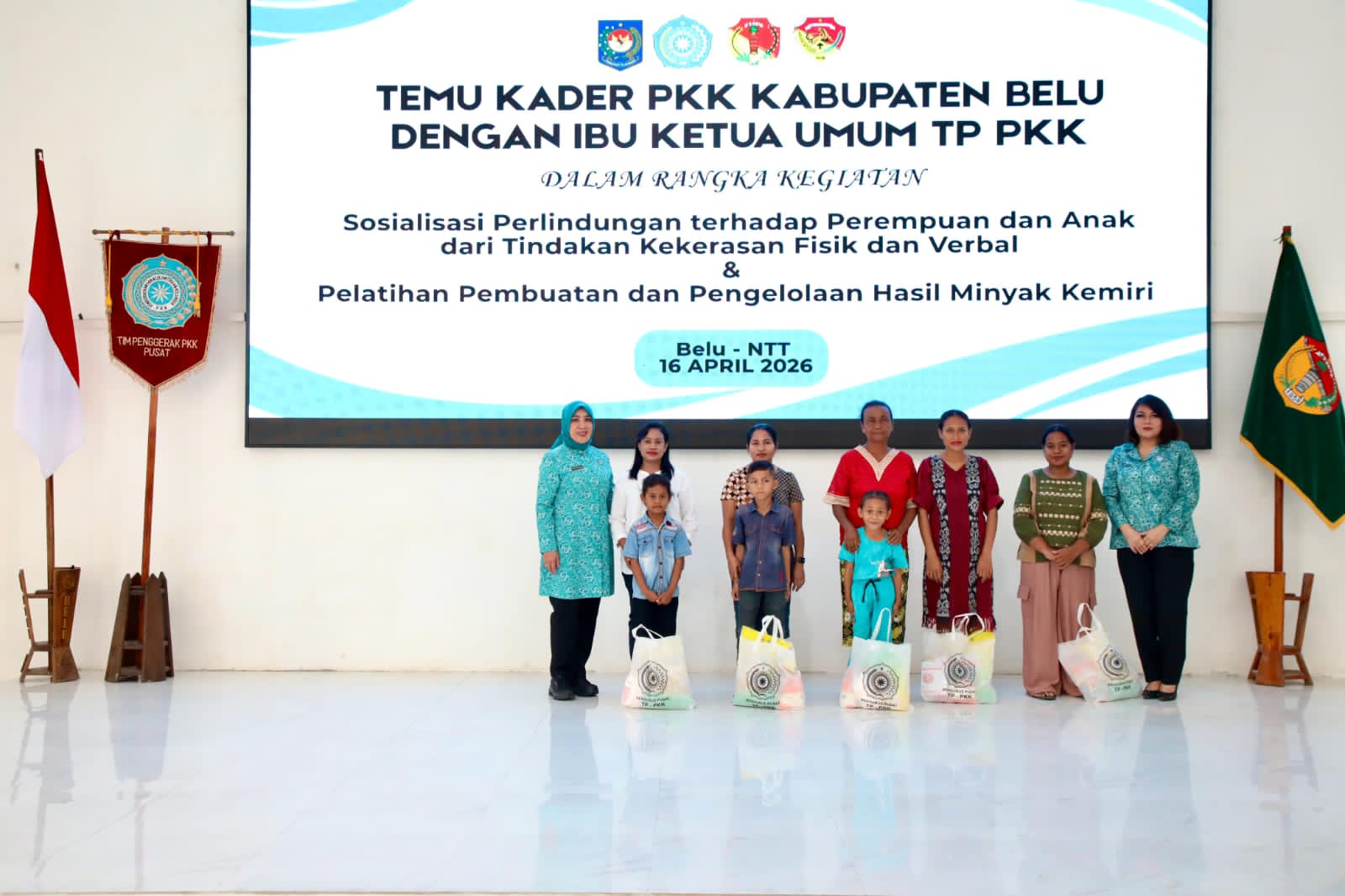 Penegasan tersebut disampaikan Tri saat menghadiri Temu Kader PKK Kabupaten Belu bersama Ibu Ketum TP PKK dalam rangka kegiatan “Sosialisasi Perlindungan terhadap Perempuan dan Anak dari Tindakan Kekerasan Fisik dan Verbal dan Pelatihan Pembuatan dan Pengelolaan Hasil Minyak Kemiri”. Kegiatan tersebut berlangsung di Gedung Wanita Betelalenok, Kabupaten Belu, Nusa Tenggara Timur (NTT), Kamis (16/04/2026).