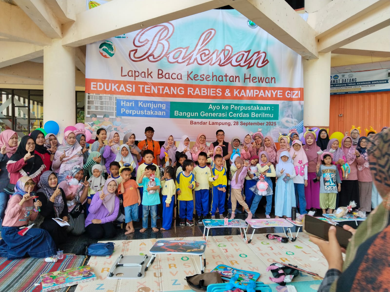 Kegiatan Lapak Baca dan Kesehatan hewan di mulai pukul 08:00 wib di adakan di Gedong Perpustakaan UniVersitas Lampung (UNILA) hadir dalam kegiatan tersebut :
