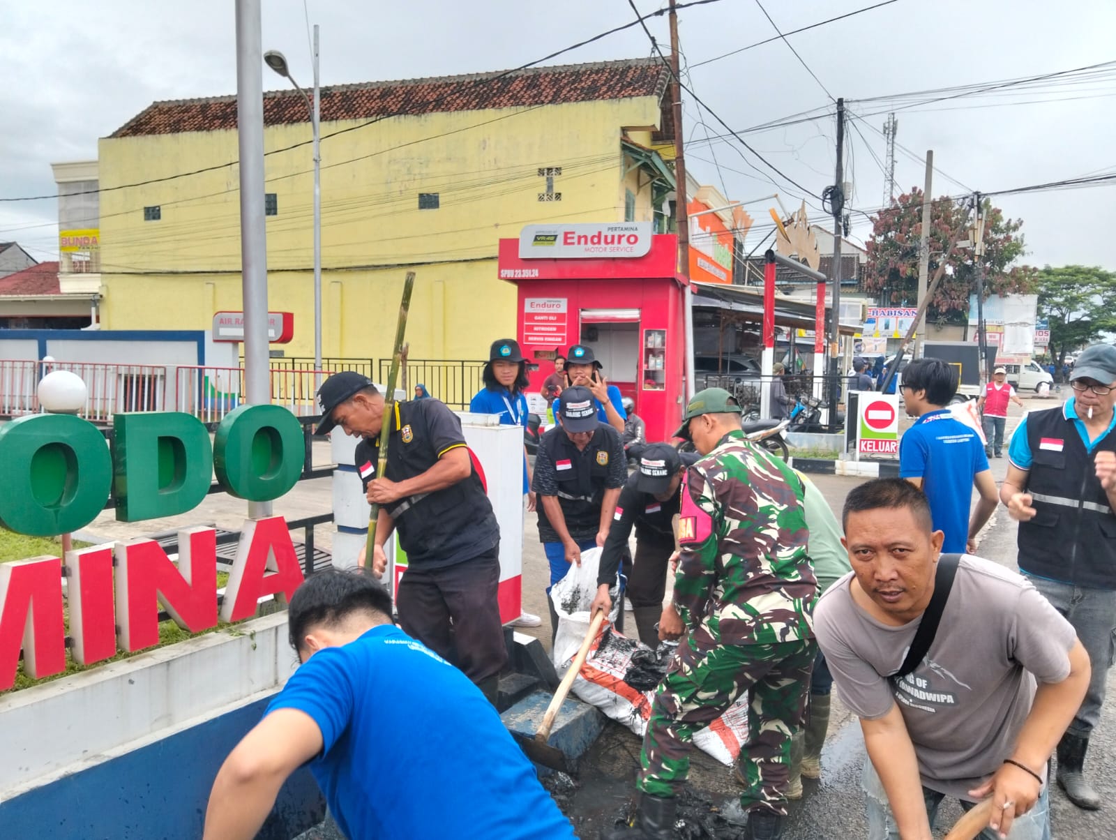 Kegiatan pembersihan yang menyasar saluran air yang tersumbat ini berlangsung aman, lancar, dan penuh keakraban. Warga tampak kompak mengeruk endapan lumpur dan membersihkan sampah-sampah plastik yang menyumbat aliran sungai kecil di pinggir jalan.