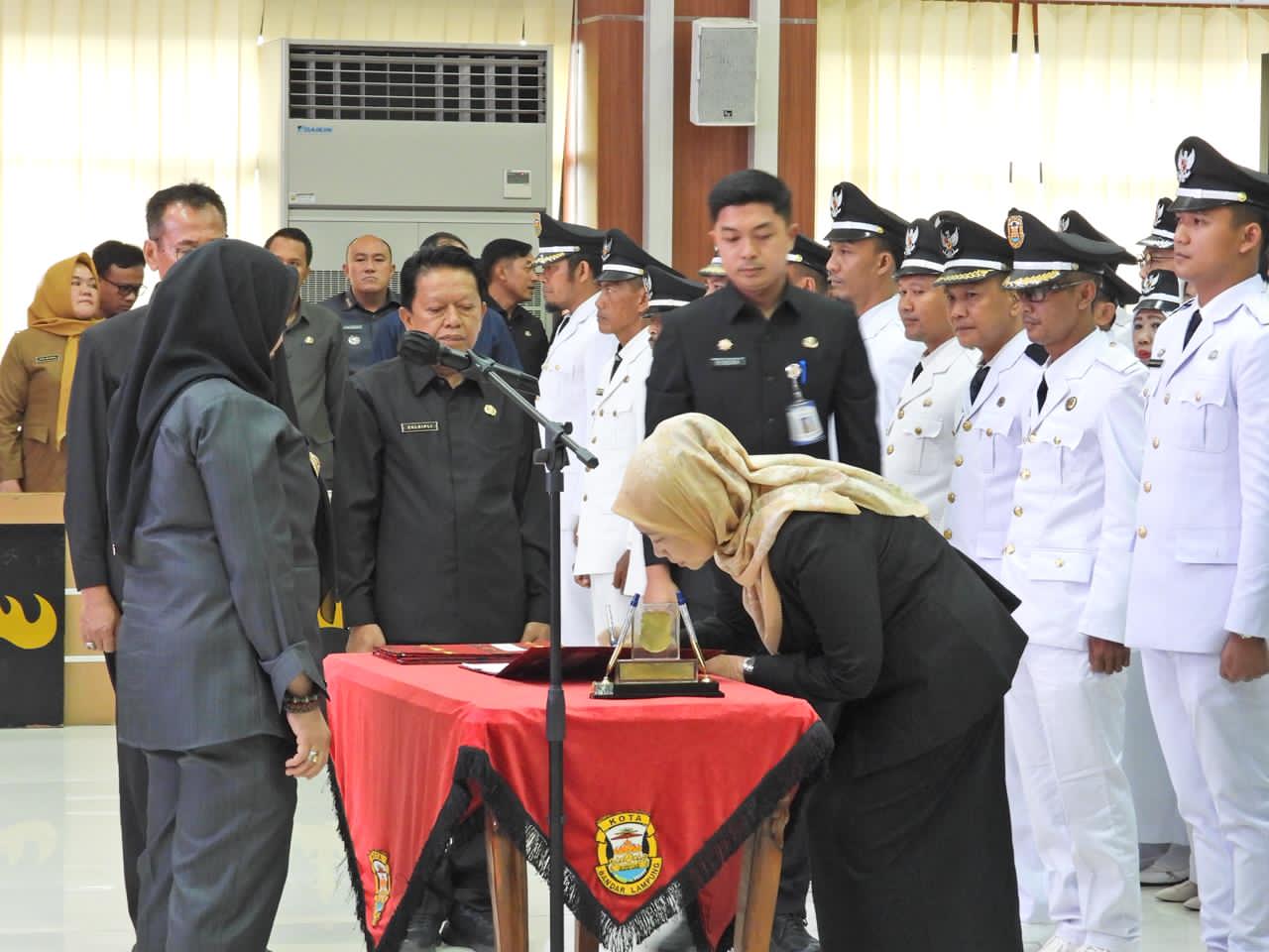 BandarLampung, Sumberpintar.com– Wali Kota Bandar Lampung, Bunda Hj. Eva Dwiana melantik sebanyak 131 pejabat administrator dan pengawas di lingkungan Pemerintah Kota Bandar Lampung, Senin (29/12/2025) di Gedung Semergou.
