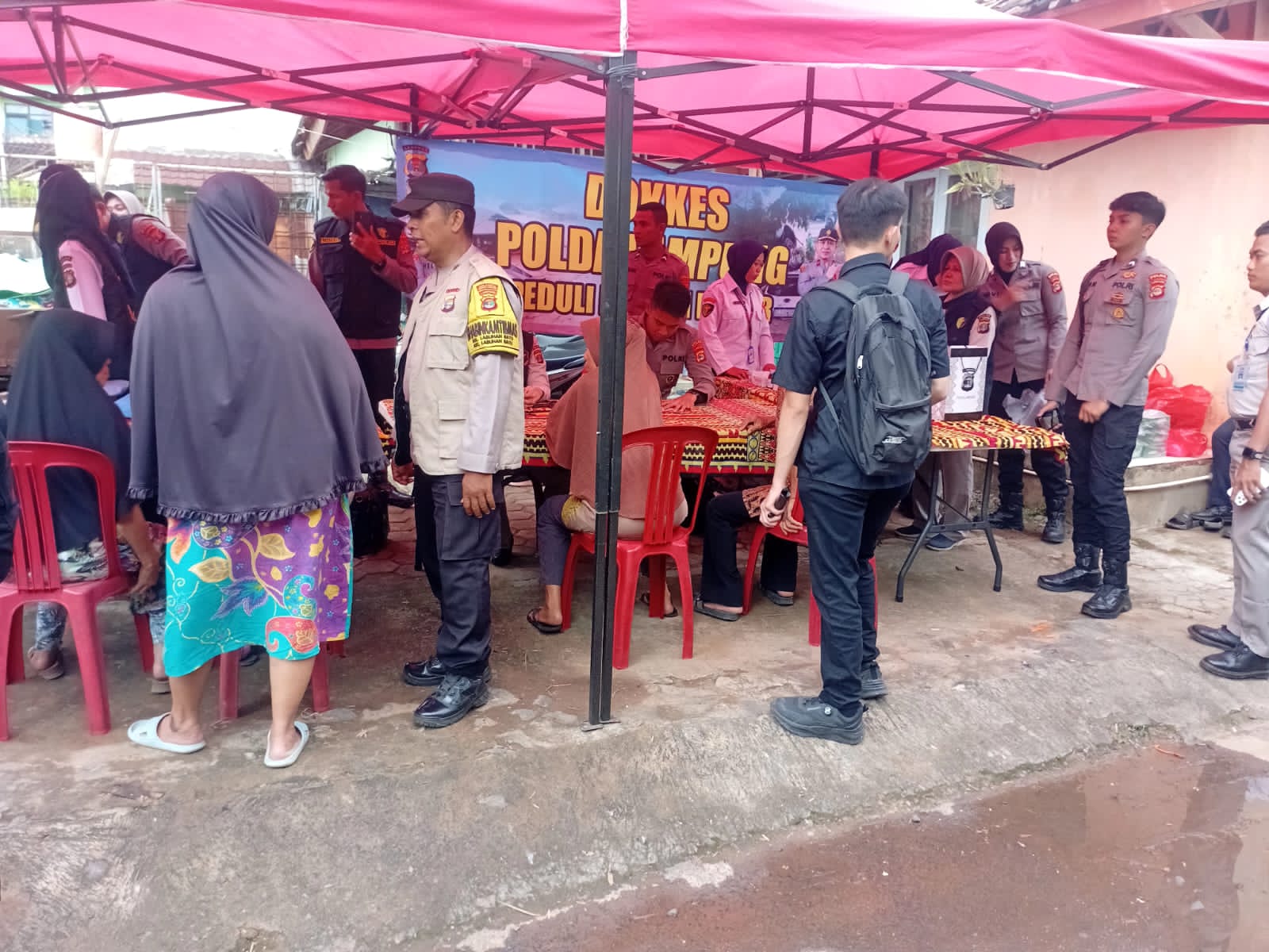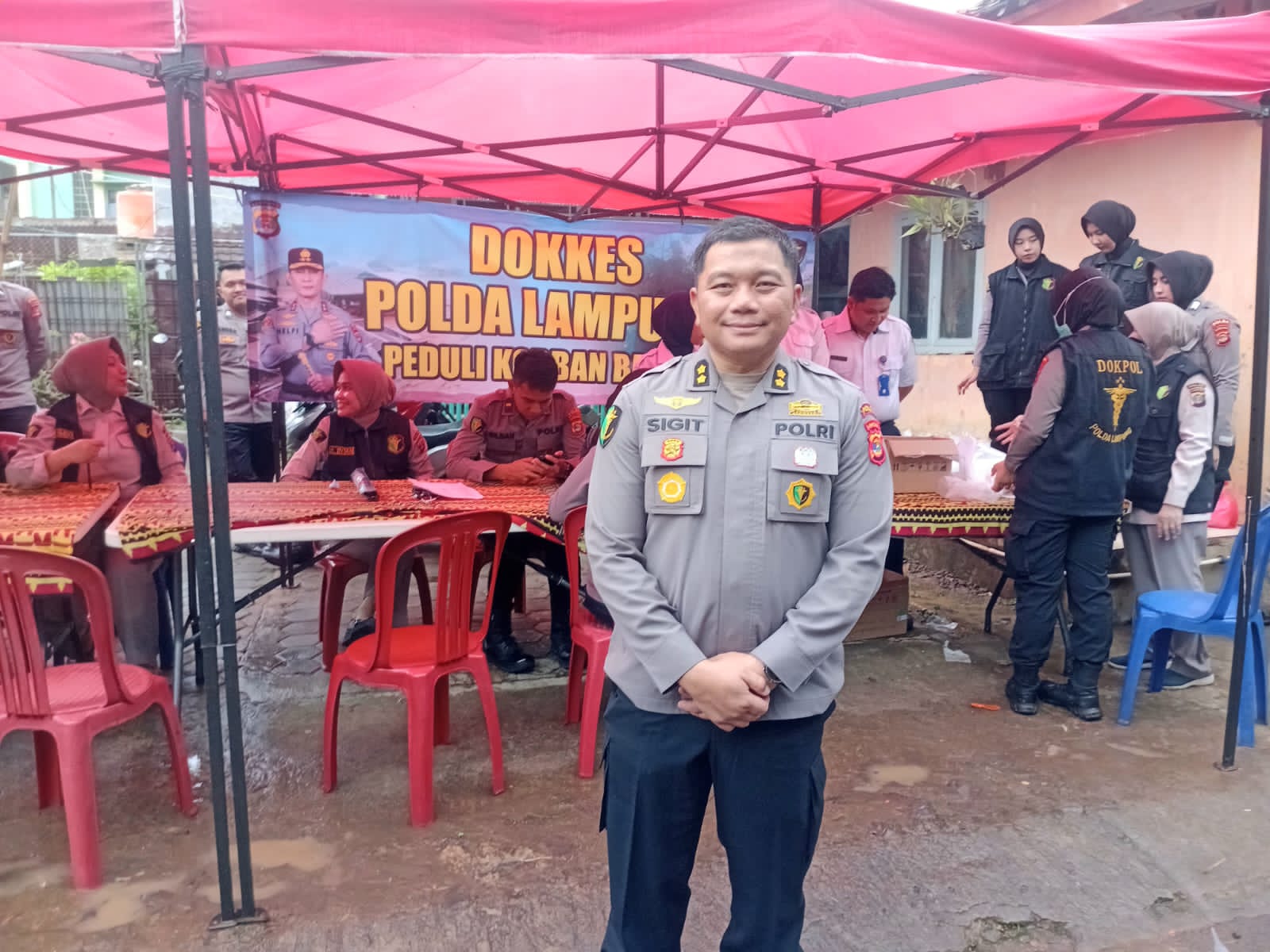 Kegiatan Dokkes Polda Lampung peduli korban banjir di jalan Dahlia 7 Kelurahan Labuhan Ratu.