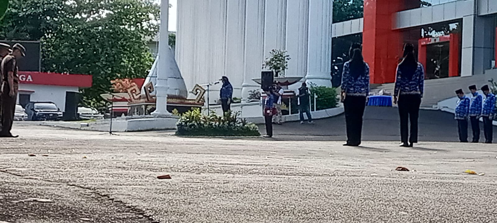 Walikota Bandar Lampung, Hj. Eva Dwiana, pimpin langsung upacara pengibaran bendera di halaman Kantor Pemerintah Kota Bandar Lampung, Senin (01/12/2025).