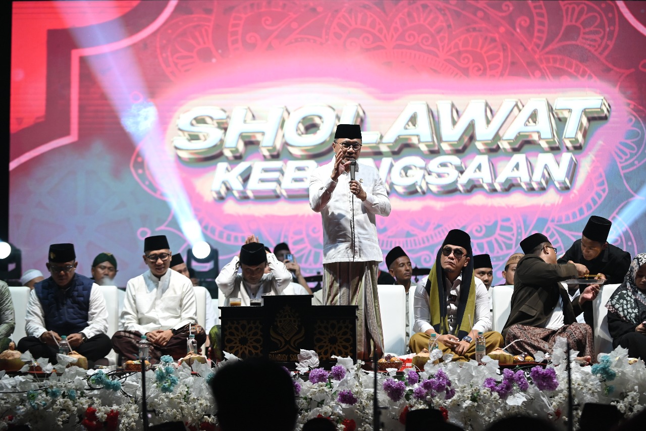 Kehadiran Gus Miftah sekitar pukul 21.50 WIB semakin menyemarakkan suasana. Ribuan jamaah menyambutnya dengan antusias sebelum bersama-sama menyanyikan lagu kebangsaan Indonesia Raya.