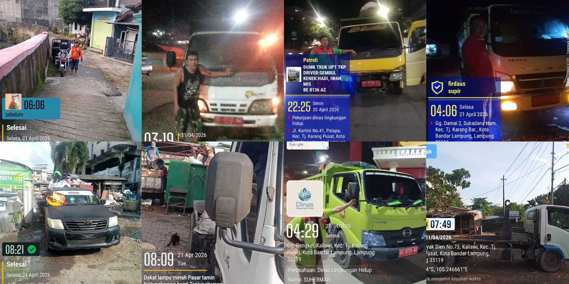 UPT Dinas Lingkungan Hidup Kecamatan Tanjung Karang Pusat melakukan kegiatan rutin,penyisiran sampah liar dijalur protokol dan pengangkutan tenk container sampah di TPS oleh team armada amrol,dumtruk,Satgas cery,Hilux dan Tosa UPT PS DLH TKP dimulai saat dini hari sampai siang hari, Selasa (21/04/2026).