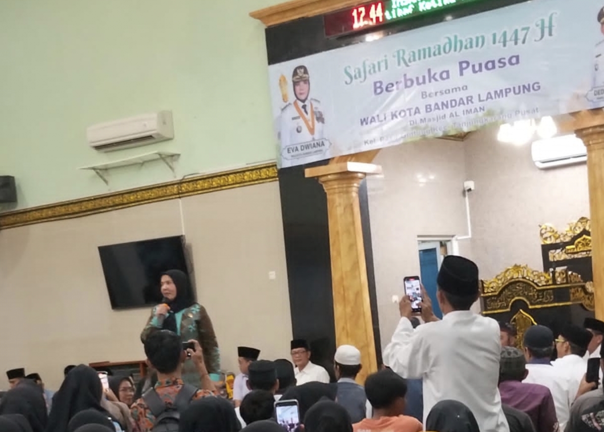 Sumberpintar.com Memererat silaturahmi di bulan suci Ramadhan, Wali Kota Bandar Lampung, Hj. Eva Dwiana, memimpin kunjungan tim safari Ramadhan Pemerintah Kota Bandar Lampung Tahun 2026 di Masjid Al Iman, Jl. Imam Bonjol, Kelurahan Pasir Gintung, Kecamatan Tanjung Karang Pusat, Bandar Lampung, Kamis (13/03/2026).