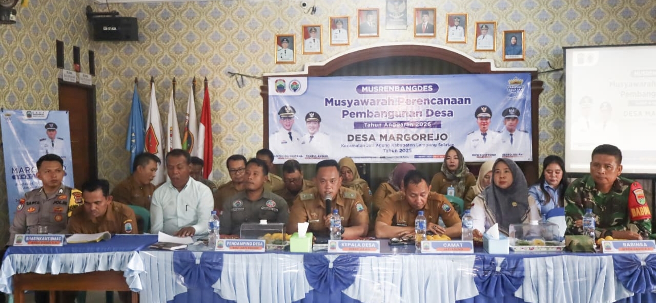 LampungSelatan,Sumberpintar.com– Pemerintah Desa Margorejo Kecamatan Jati Agung,Kabupaten Lampung Selatan gelar Musyawarah Perencanaan Pembangunan Desa (MusrenbangDes) dalam rangka penyusunan Rencana Kerja pemerintah desa Tahun 2026 di Aula balai desa,Senin (06/10/2025).