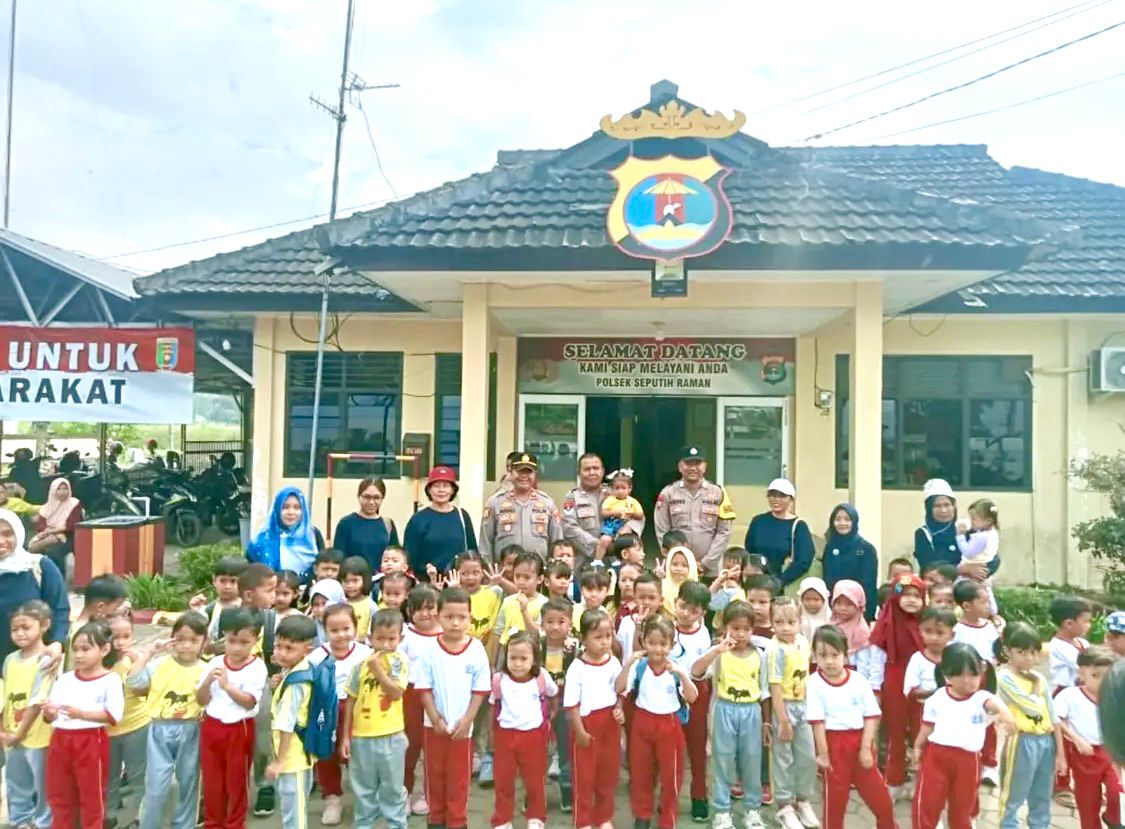 Kunjungan anak-anak dengan didampingi para dewan guru pendamping serta orang tua/wali murid ini disambut hangat oleh Kapolsek Seputih Raman, Iptu Mursidi, S.H, menciptakan suasana penuh keceriaan dan keakraban.