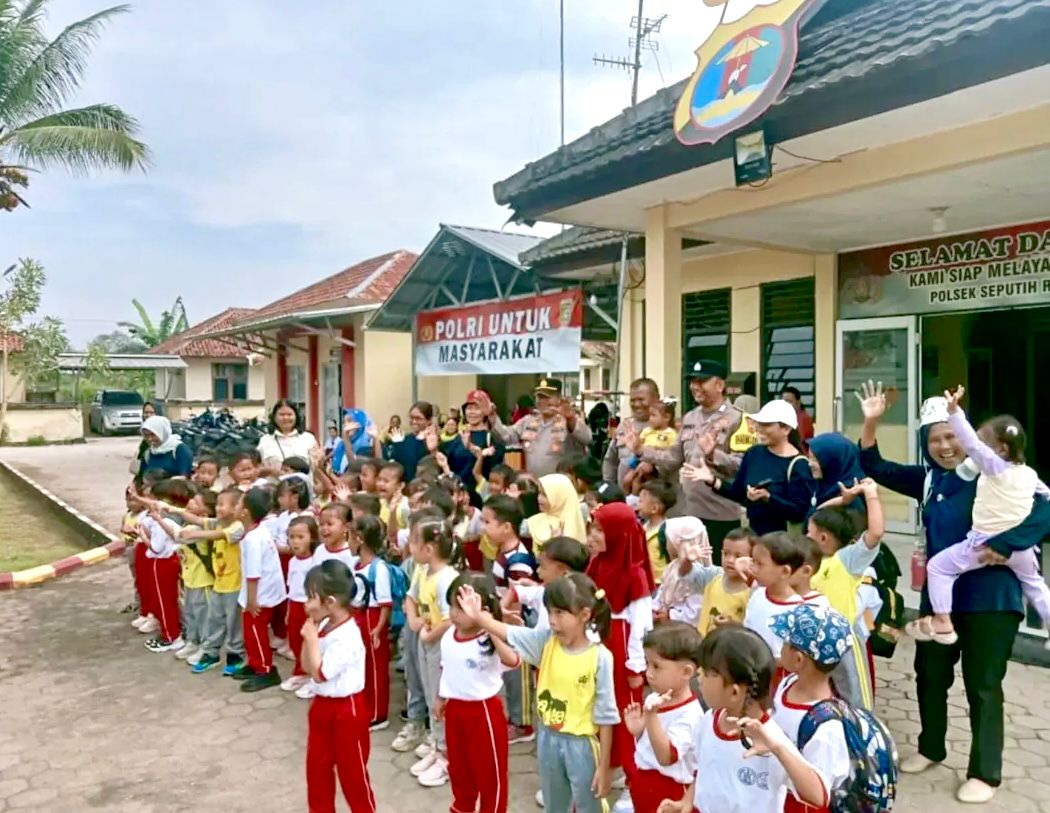 Dengan penuh keceriaan, puluhan anak-anak dari Paud dan TK Cerdas Ceria datang berkunjung ke Mapolsek Seputih Raman untuk mengenal lebih dekat tugas-tugas Kepolisian.