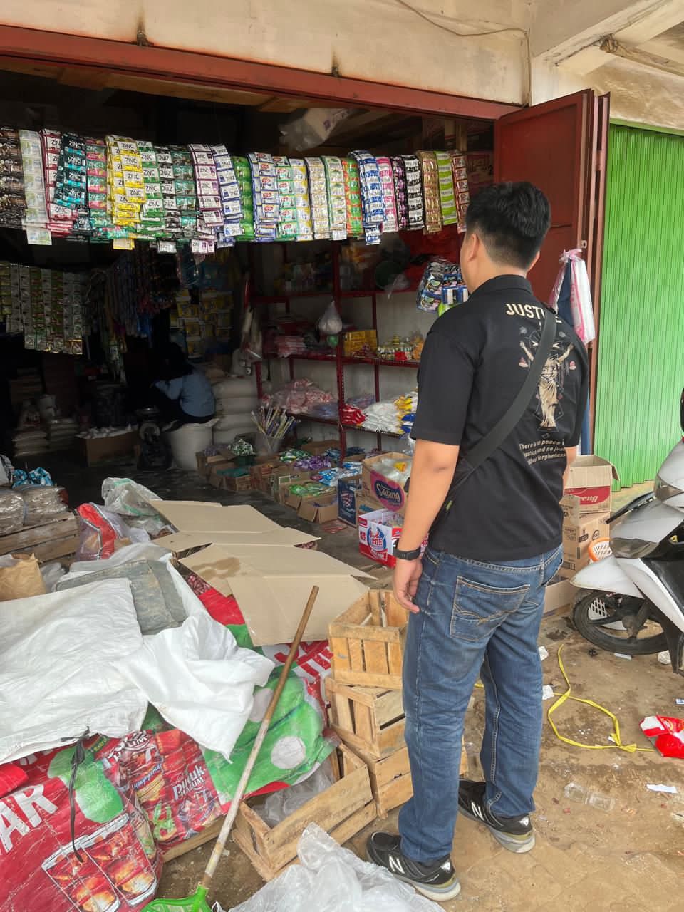 Menyasar sejumlah titik distribusi pangan, salah satunya di Toko Nasarrudin, Pasar Sentral Kota Alam, Kecamatan Kotabumi Selatan.