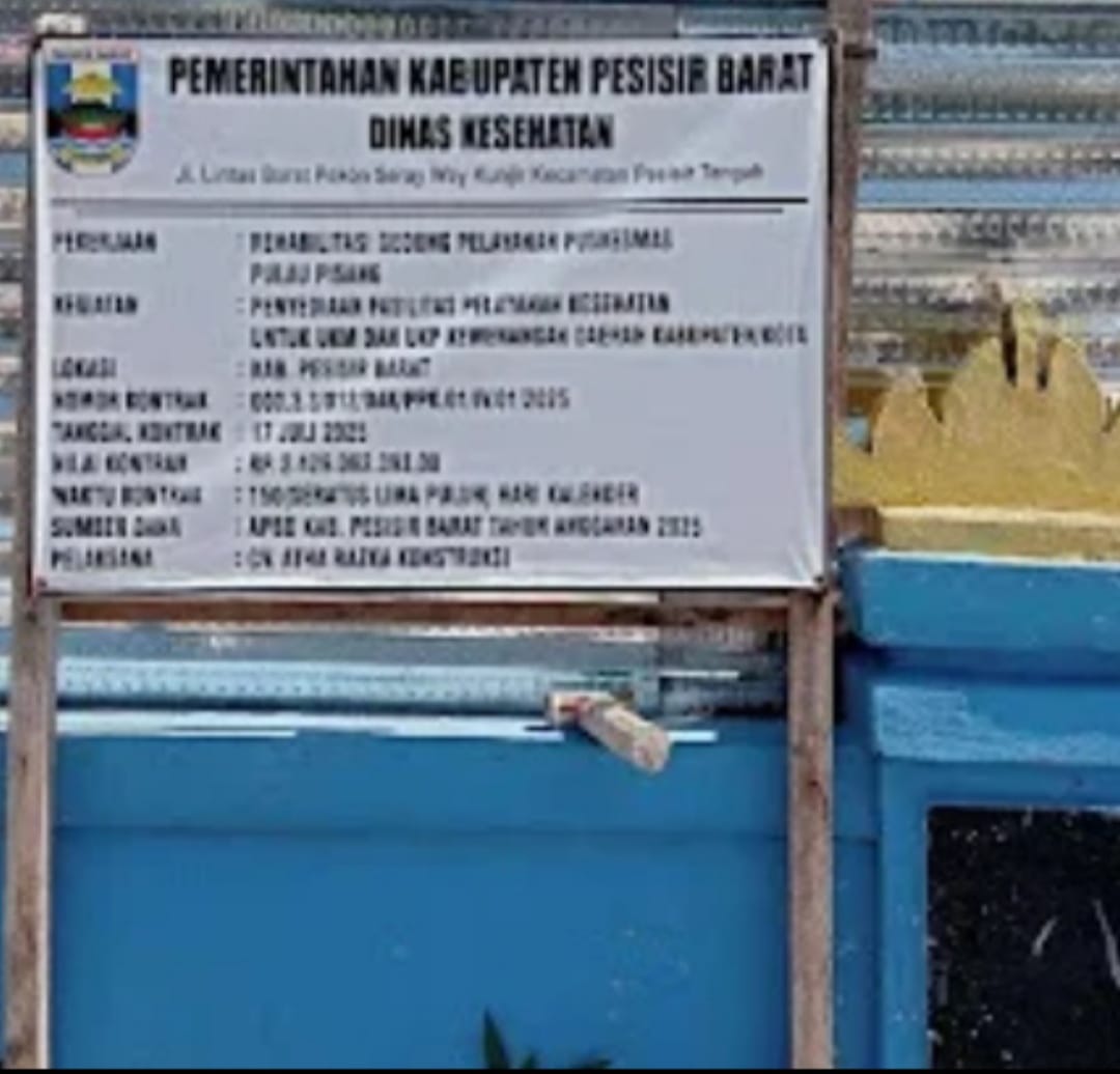 PesisirBarat, Sumberpintar.com— , Pemerintah Kabupaten Pesisir Barat (Pesibar) Laksanakan Proyek Pembuatan Rehabilitasi Gedung pelayanan Kesehatan Masyarakat atau Rumah Sakit di Kecamatan Pulau Pisang yang hingga kini tidak ada tindak lanjut alias terbengkalai , pada minggu, 16 /11/2025 .