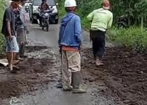 Jalan utama yang menghubungkan Pekon Wonoharjo Kecamatan Sumberejo dengan Pekon Campang, Kecamatan Gisting mengalami kerusakan parah.