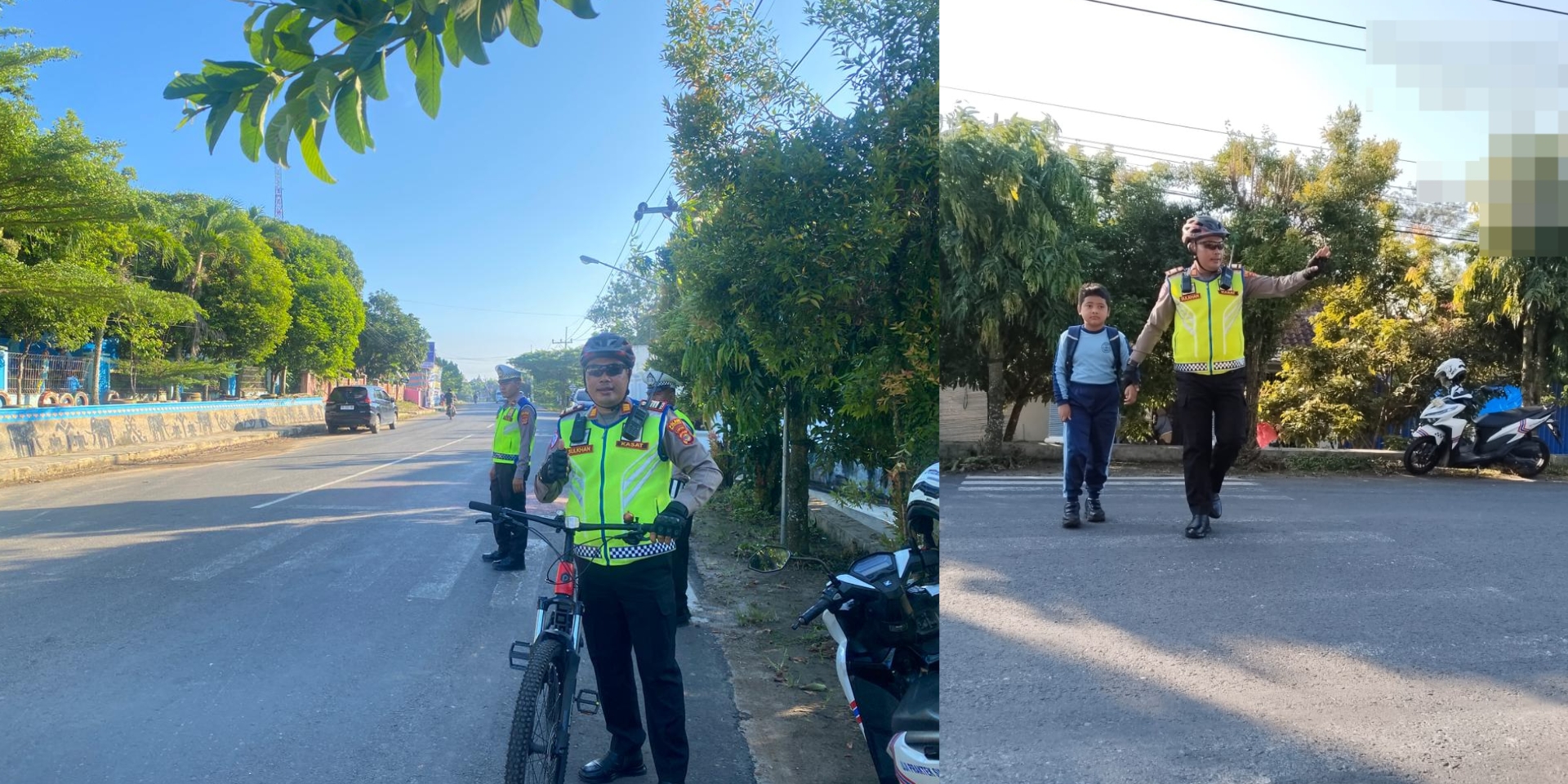 Memastikan keamanan masyarakat tersebut, personel Kepolisian tampak sigap membantu penyeberangan anak-anak sekolah, mengatur arus kendaraan dan memastikan kelancaran mobilitas di jalur tersebut.