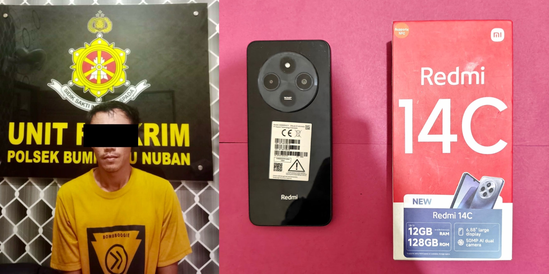 Namun, di saat situasi lengah dan gubuk dalam keadaan kosong, pelaku juga mengambil handphone merk Redmi 14C milik korban yang sedang diisi daya.