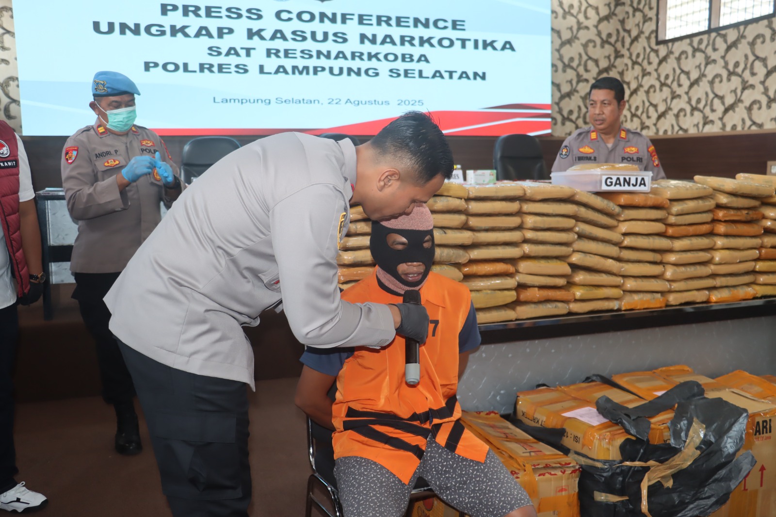 Wakapolres Lampung Selatan Kompol Made Silpa Yudiawan menyampaikan langsung penangkapan tersebut dalam konferensi pers di Aula GWL Mapolres Lampung Selatan, Jumat (22/8/2025). Ia didampingi Kasat Narkoba dan Kasi Humas Polres Lampung Selatan.