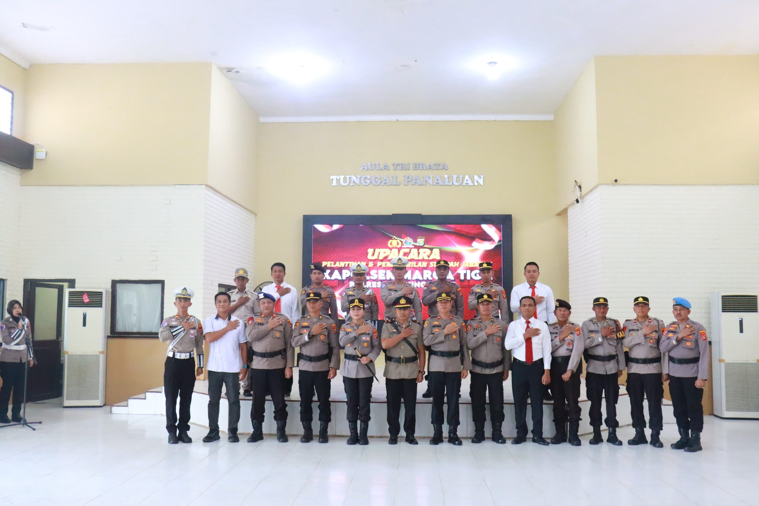 Upacara juga menjadi momentum resmi pengambilan sumpah jabatan oleh IPTU Amalludin yang sebagai Kapolsek Marga Tiga, menggantikan IPTU Pantas Siregar yang telah memasuki masa purna tugas/pensiun. Penggantian ini menandai peralihan kepemimpinan secara terhormat dan profesional, sesuai dengan tradisi dinamis dalam institusi Kepolisian Negara Republik Indonesia.