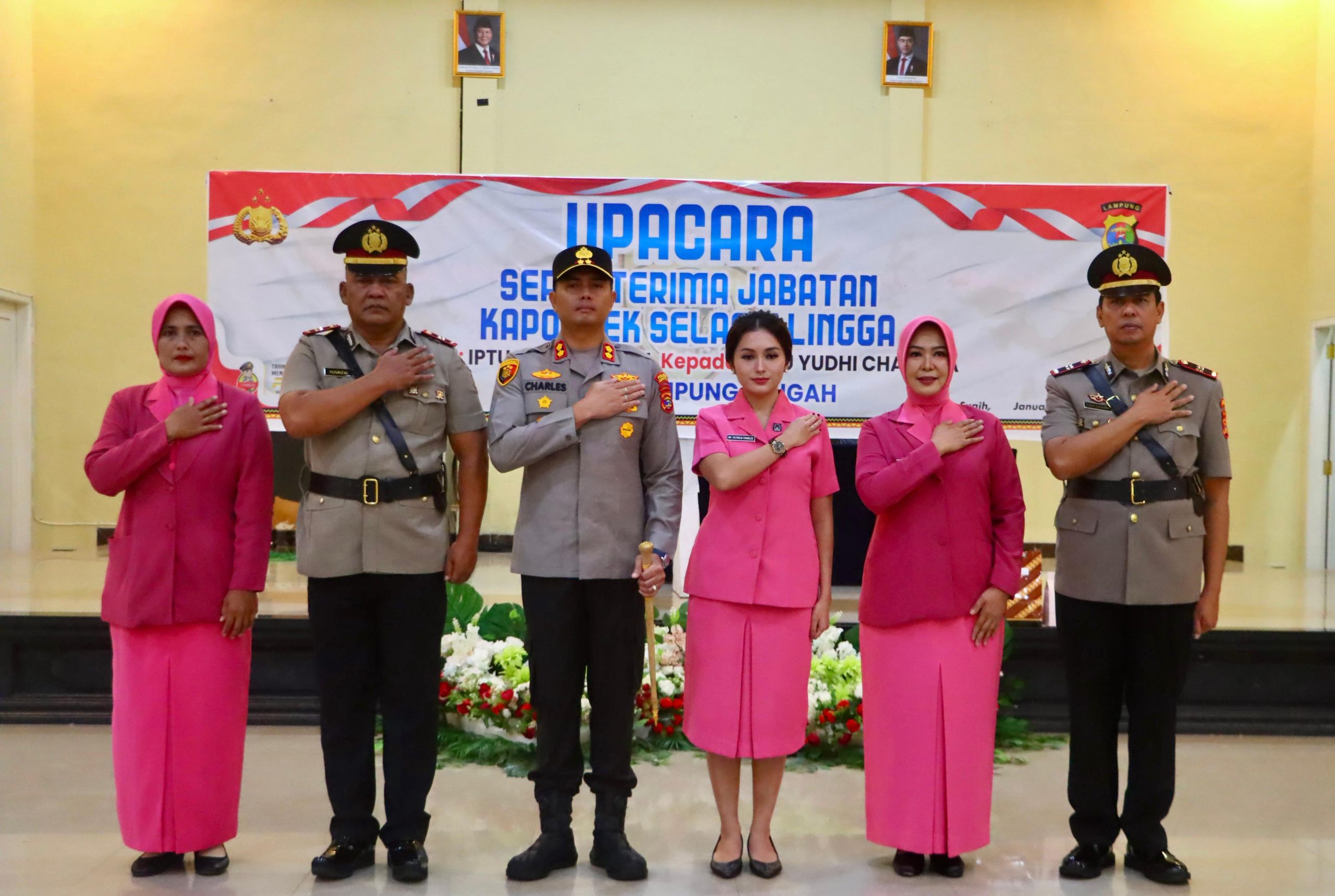 LampungTengah, Sumberpintar.comKapolres Lampung Tengah, Polda Lampung, AKBP Charles Pandapotan Tampubolon, S.I.K., S.H., M.H memimpin langsung upacara serah terima jabatan (Sertijab) PS. Kapolsek Selagai Lingga, di aula Atmani Wedhana Mapolres setempat pada Rabu (21/01/2026) pagi.