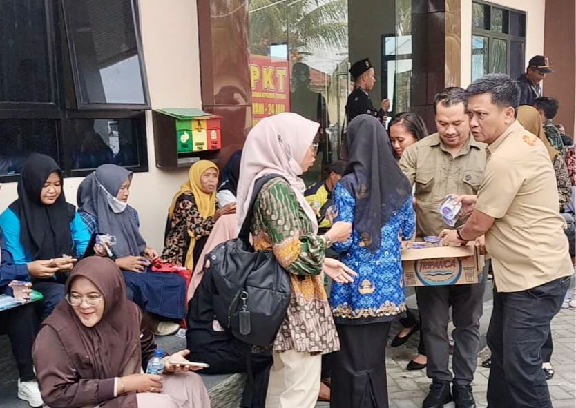 LampungTengah,Sumberpintar.com–Sat Intelkam Polres Lampung Tengah, Polda Lampung bagikan air mineral ke ratusan warga pemohon surat keterangan catatan kepolisian (SKCK), Rabu (17/09/2025)