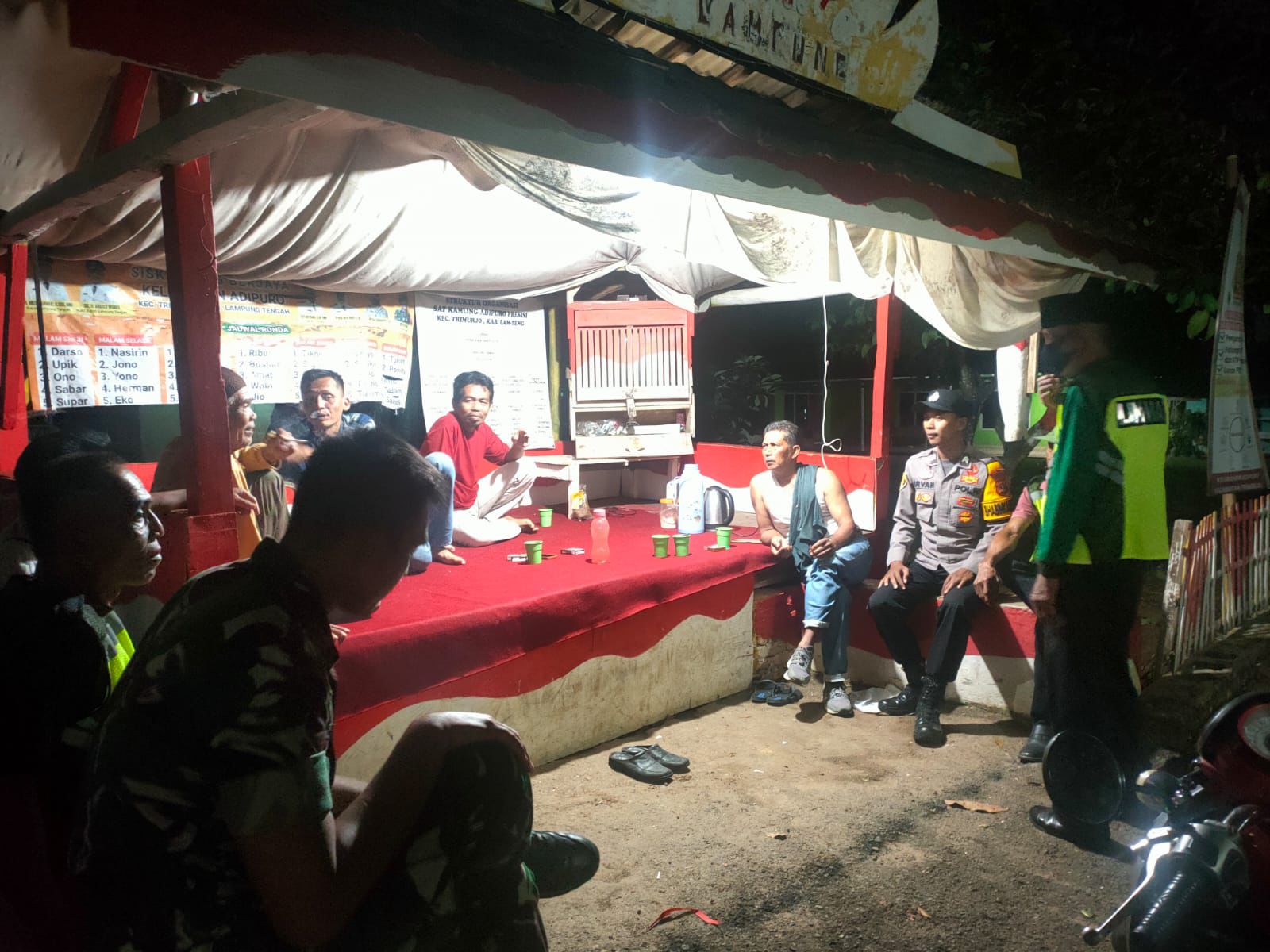 LampungTengah,Sumberpintar.com– Sinergitas dan kebersamaan antara TNI-Polri kembali terlihat dalam kegiatan sambang desa sekaligus pengecekan poskamling yang berlangsung di Kelurahan Adipuro, Kecamatan Trimurjo, pada Minggu malam (05/10/2025).