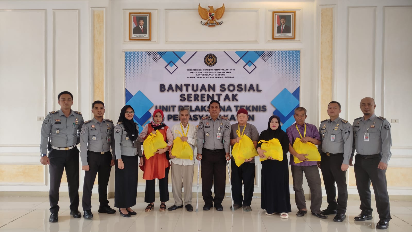 Selain panen raya, Rutan Bandar Lampung juga melaksanakan bakti sosial dengan menyalurkan bantuan berupa bahan pangan hasil panen dan kebutuhan dasar kepada keluarga warga binaan. Kegiatan ini diikuti dengan antusias oleh seluruh petugas dan warga binaan di Rutan Bandar Lampung. Seluruh rangkaian acara diakhiri dengan foto bersama antara petugas, warga binaan dan keluarga warga binaan pemasyarakatan.