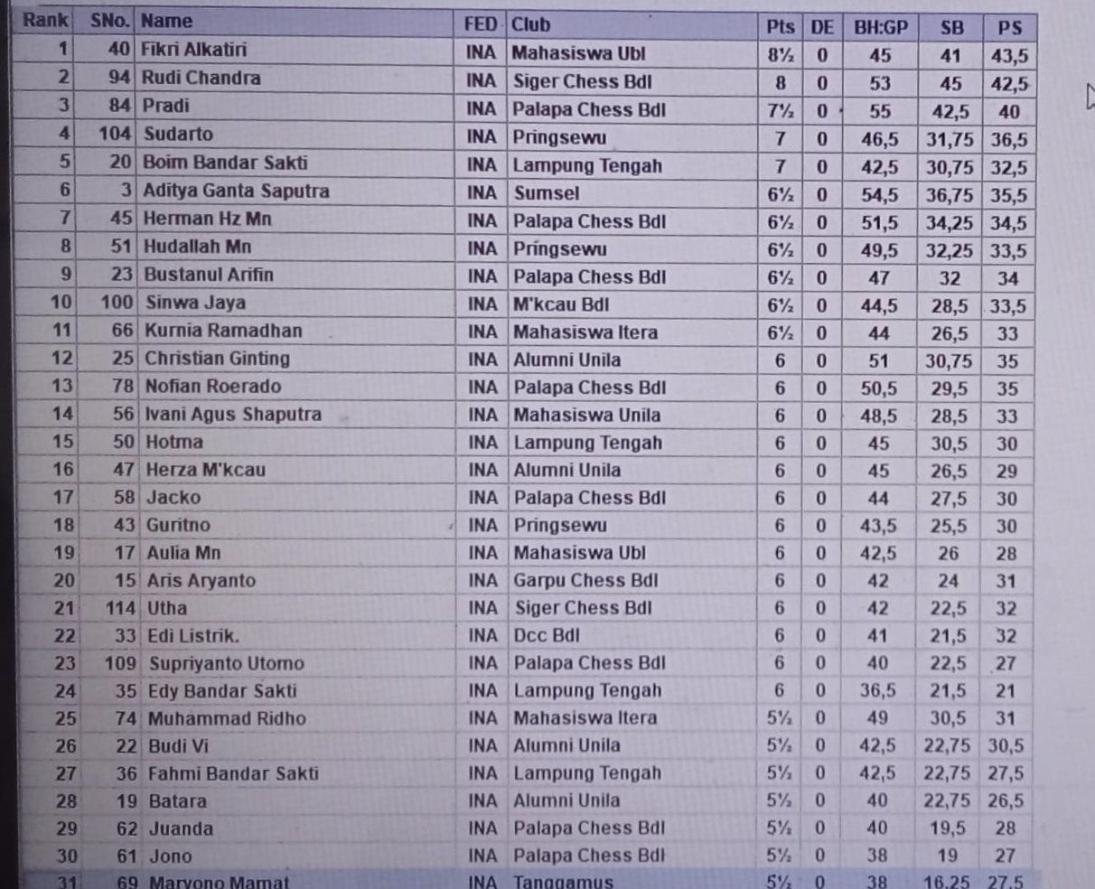 Selamat bagi pemenang liga catur Unila dan terima kasih para peserta, semoga bermanfaat.