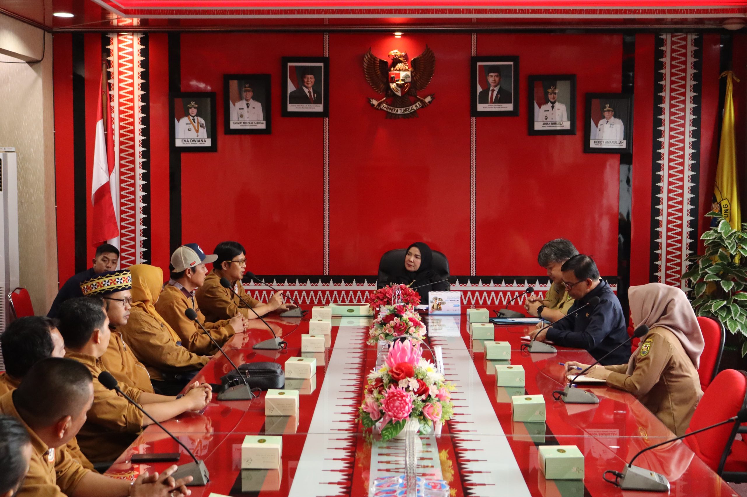 Eva Dwiana membersamai dan menerima langsunh silaturahmi jajaran Taring, di ruang kerja Wali Kota Bandar Lampung, Senin, (11/08/2025).