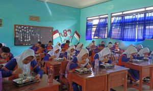 Saat kepala sekolah memasuki ruangan yang akan dibagikan makan bergizi gratis, siswa-siswi terlihat bahagia dan hanya sedikit yang membawa bekal dari rumah tidak dimakan MBGnya, karena terkadang siswa kurang selera dan bahkan ada yang nambah.