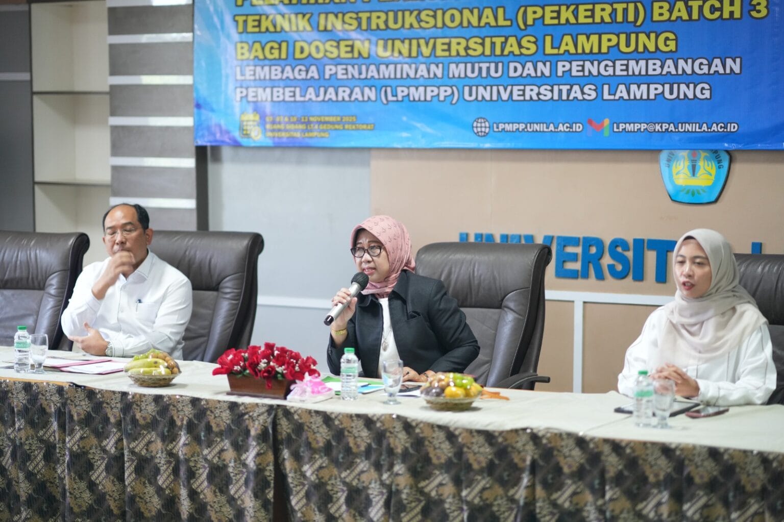 Lampung, Sumberpintar.com— Lembaga Penjaminan Mutu dan Pengembangan Pembelajaran (LPMPP) Universitas Lampung (Unila) menggelar pelatihan Peningkatan Keterampilan Dasar Teknik Instruksional (Pekerti) batch tiga bagi dosen Unila, Senin (03/11/2025).