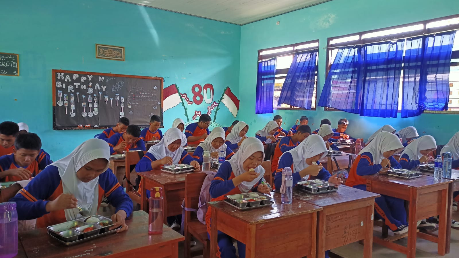 Senyum Gembira Penerima Manfaat SMP Negeri 10 Bandar Lampung dapat  Makan Bergizi Gratis