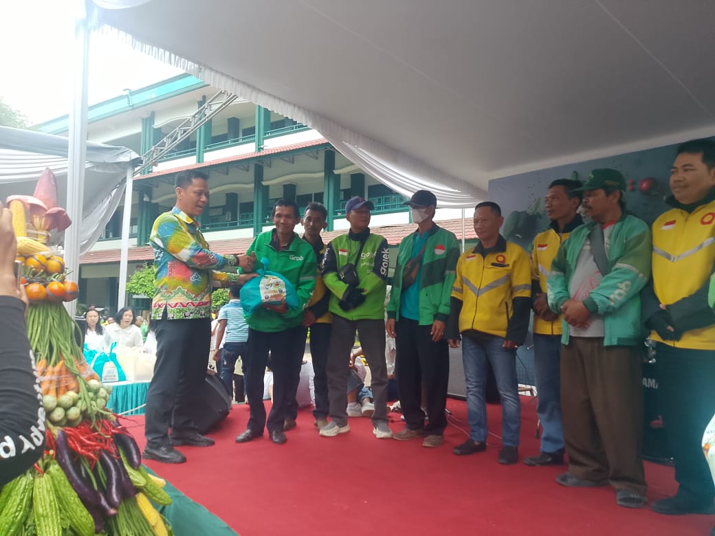 Pembagian paket sembako sebanyak 210 yang berisi beras, minyak, mie instan didistribusikan kepada Ojol dan warga sekitar.