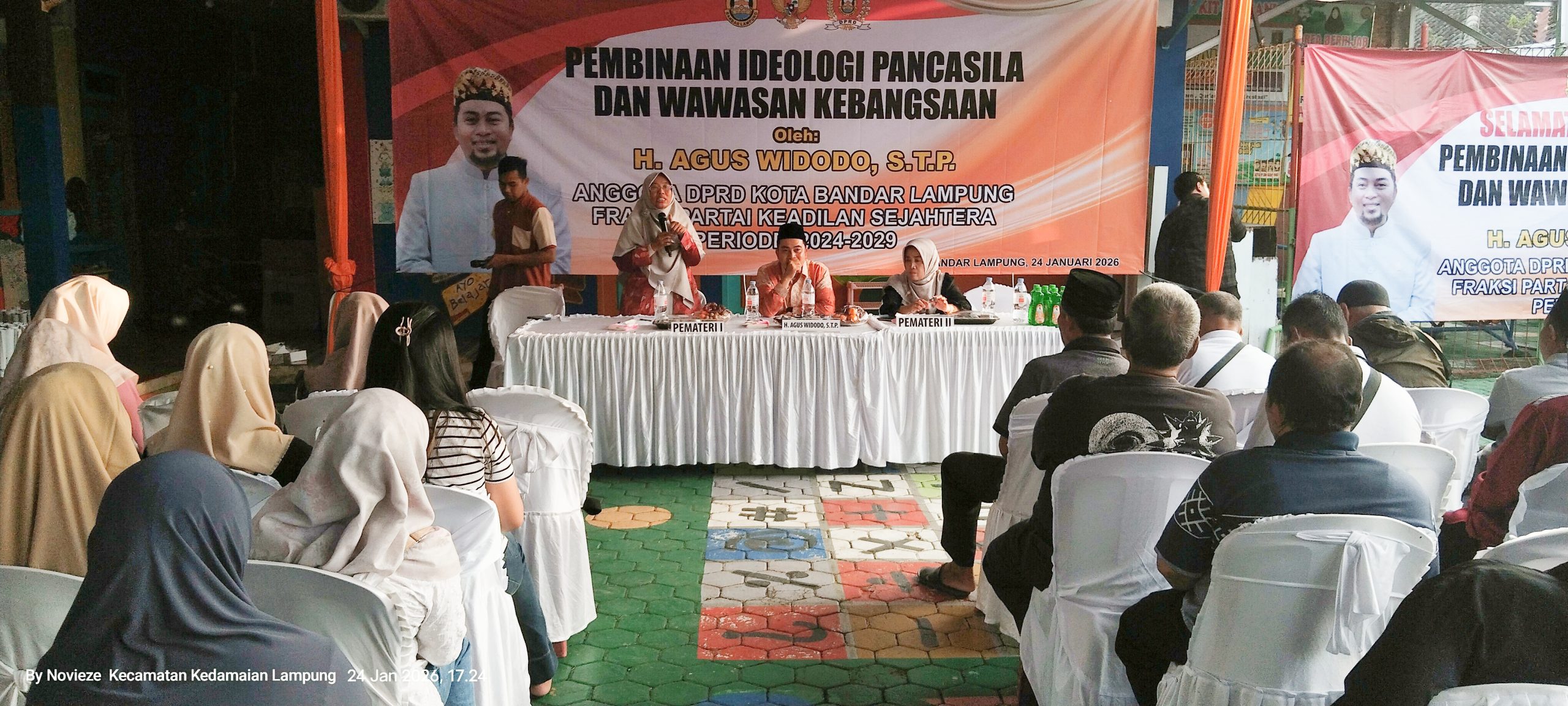 BandarLampung, Sumberpintar.com Anggota DPRD Kota Bandar Lampung dari Fraksi PKS, Agus Widodo, menggelar kegiatan Pembinaan Ideologi Pancasila dan Wawasan Kebangsaan (PIP WK) di Kelurahan Tanjung Baru, Kedamaian, Kota Bandar Lampun, Sabtu (24/01/2026).