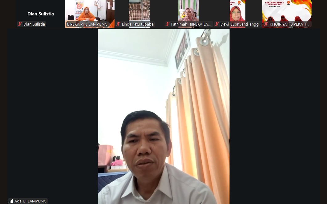 Melalui Rapat Koordinasi Wilayah (Rakorwil) BIPEKA PKS Se-Lampung yang digelar secara daring pada Ahad (19/10/2025), seluruh pengurus BIPEKA dari DPD PKS kabupaten/kota se-Lampung menyatukan langkah dalam mewujudkan family mainstreaming atau pengarusutamaan keluarga di seluruh program pelayanan dan pemberdayaan masyarakat.