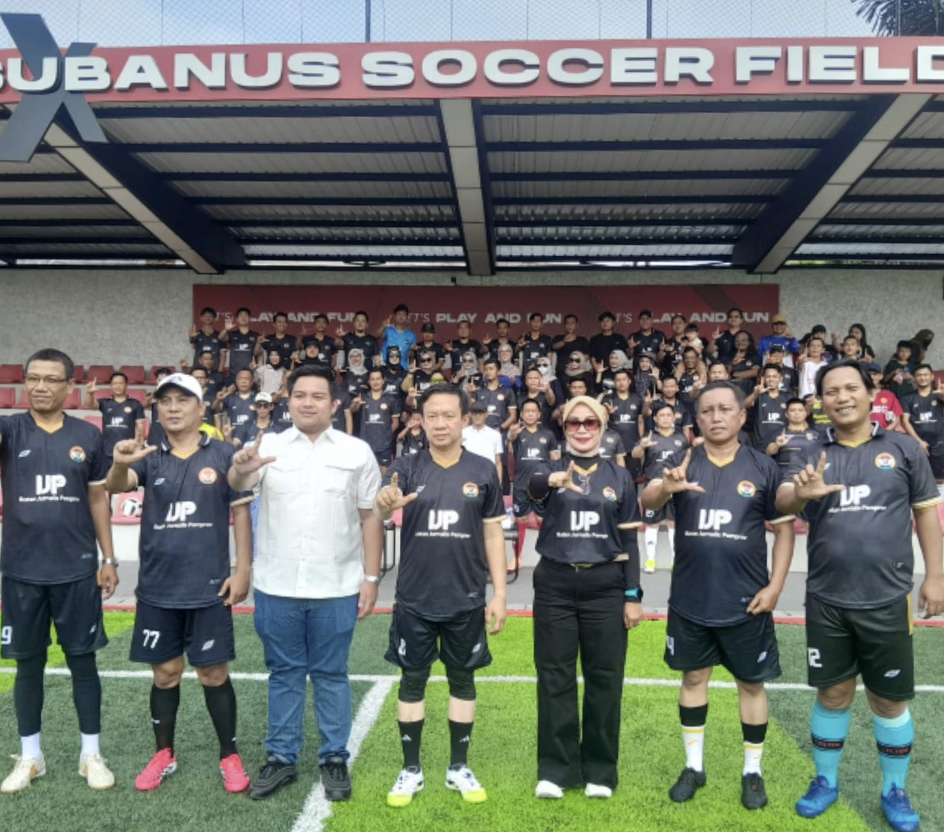 “Biasanya kita bertemu dalam rapat atau konferensi pers. Hari ini kita bertemu dalam suasana santai, seragamnya sama, di lapangan yang sama, dengan semangat kebersamaan,” katanya.