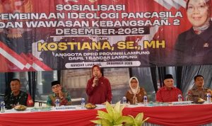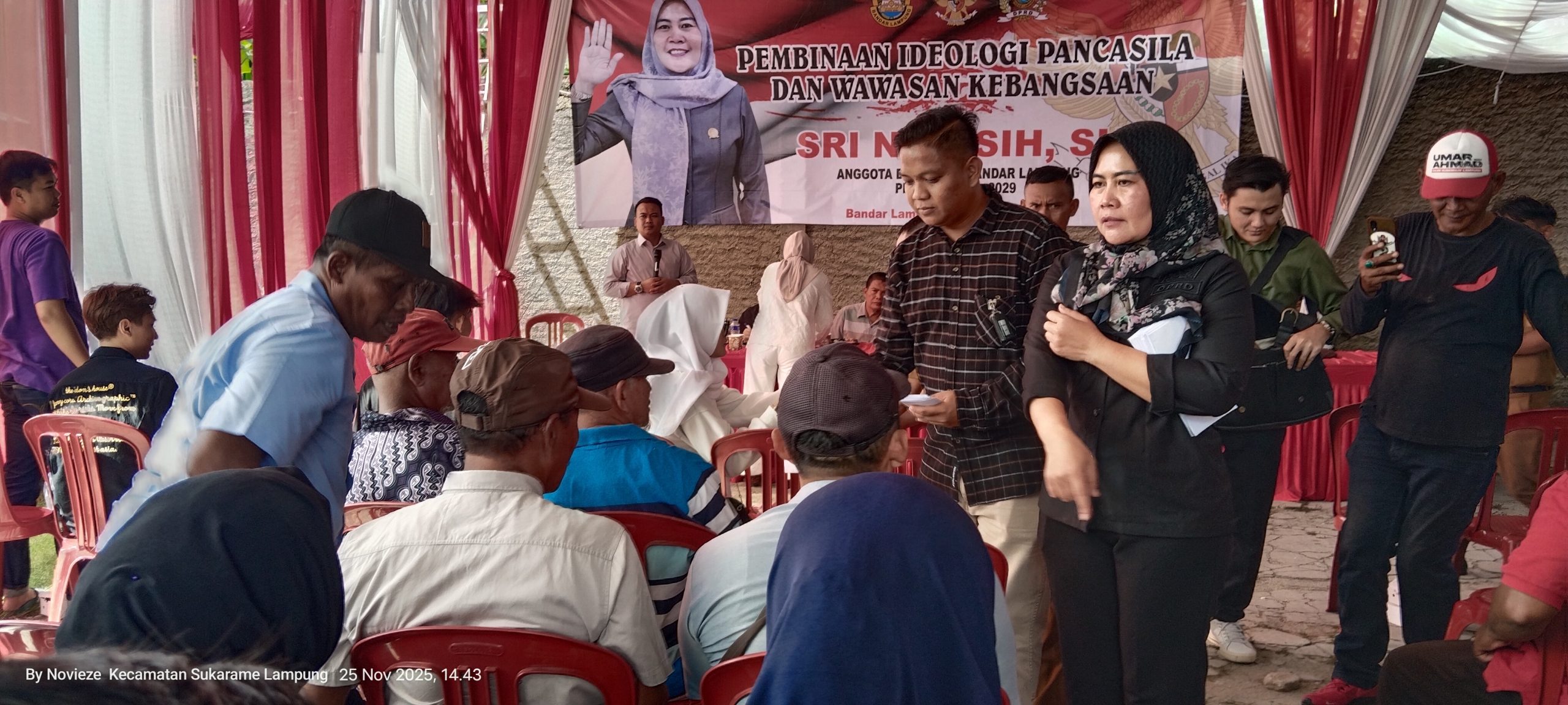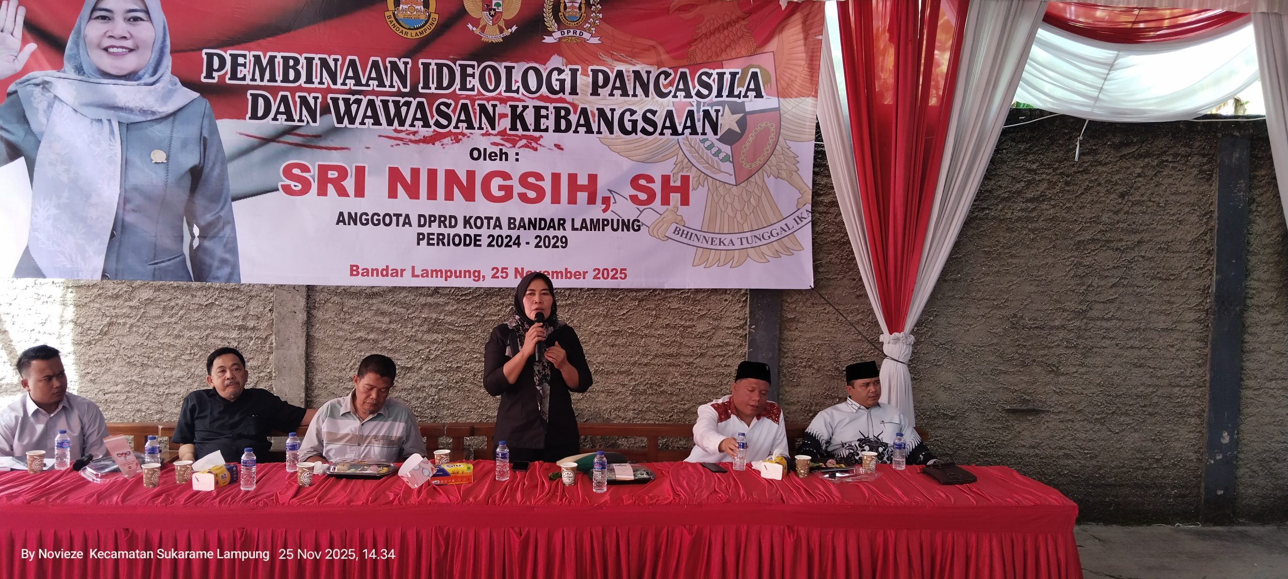 BandarLampung, Sumberpintar.com– Sri Ningsih Djamsari gelar sosialisasi Pembinaan Ideologi Pancasila dan Wawasan Kebangsaan (PIP-WK) di Kecamatan Sukarame, Selasa (25/11/2025).