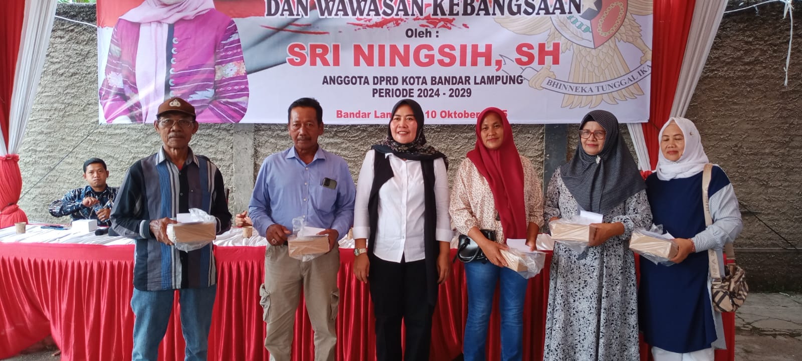 BandarLampung,Sumberpintar.com– Sri Ningsih Anggota DPRD Kota Bandar Lampung dari Fraksi PDI Perjuangan turun langsung serap aspirasi warga melalui Pembinaan Ideologi Pancasila dan Wawasan Kebangsaan di Jl Kemuning Sukarame, Kota Bandar Lampung, Jumat (10/10/2025).