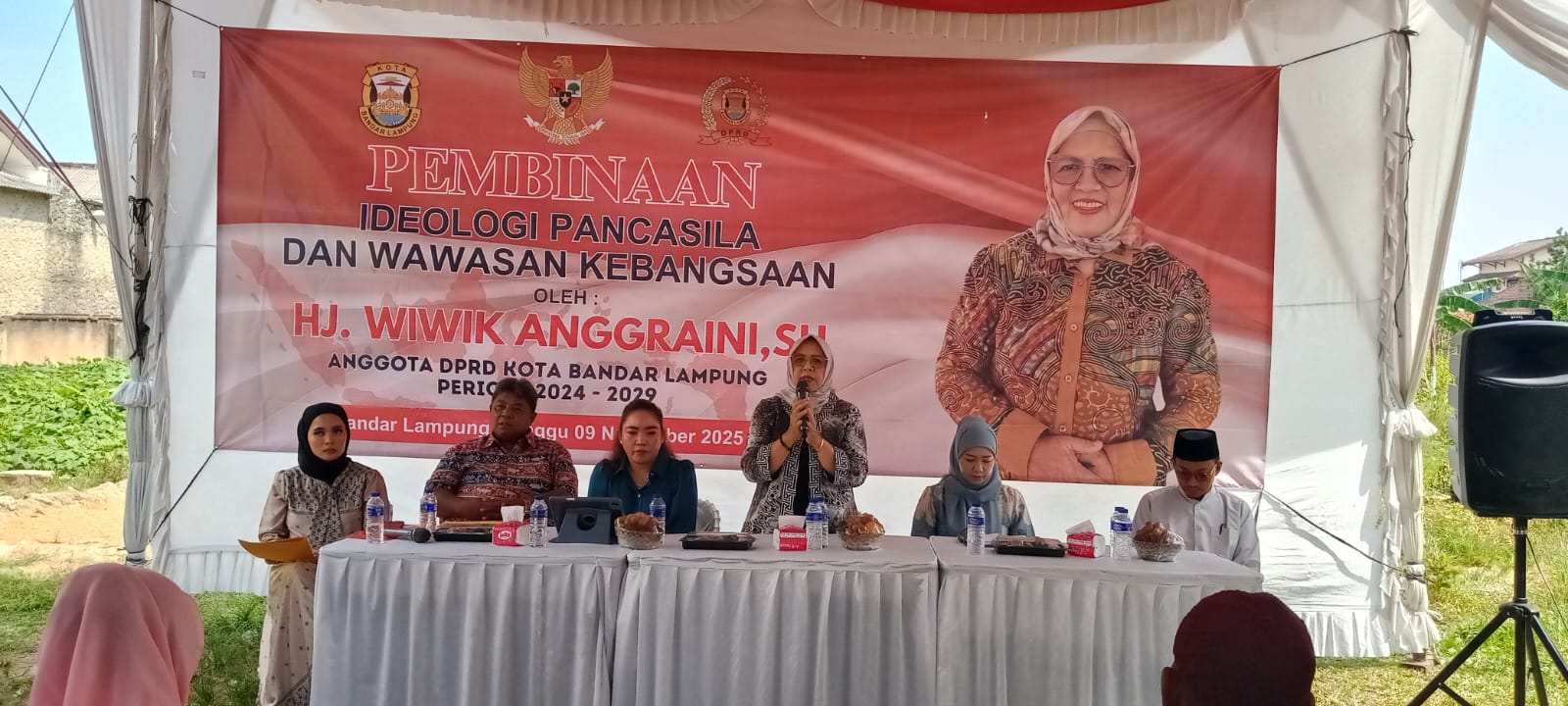 BandarLampung, Sumberpintar.com–Wiwik Anggraini Wakil Ketua DPRD Kota Bandar Lampung menyosialisasikan Pembinaan Ideologi Pancasila dan Wawasan Kebangsaan (PIP-WK),Minggu (09/11/2025) di Jl.Pulau Batam IV Kelurahan Way Halim Permai Kecamatan Way Halim, Bandar Lampung.