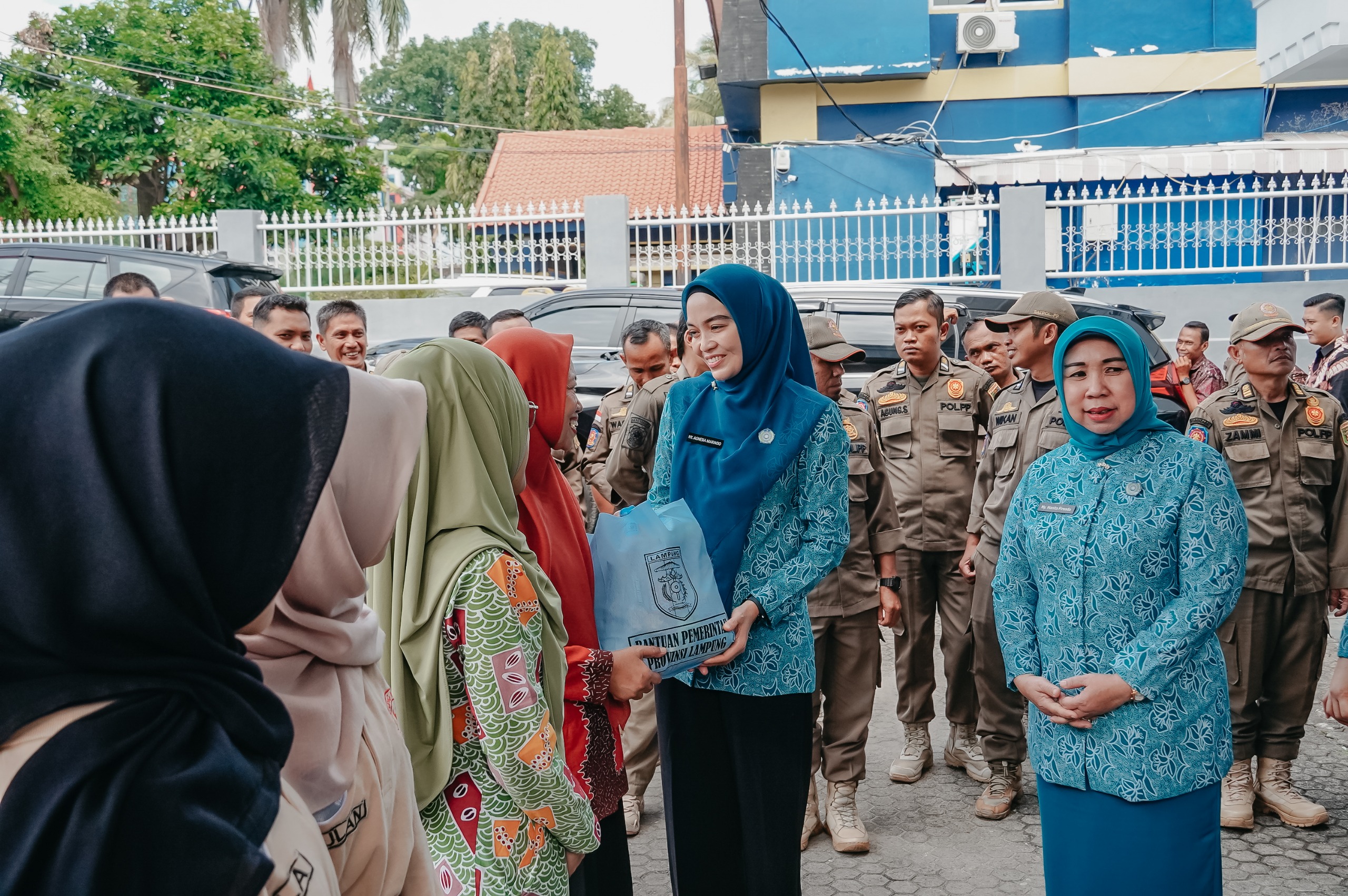 Penyerahan paket sembako dilakukan secara simbolis oleh Ketua TP PKK Provinsi Lampung yang didampingi Kepala Dinas Sosial Provinsi Lampung Aswarodi serta Kepala Dinas Pemberdayaan Perempuan dan Perlindungan Anak Provinsi Lampung Hanita Farial. Bantuan tersebut kemudian diserahkan kepada perwakilan staf di lingkungan Pemerintah Provinsi Lampung.