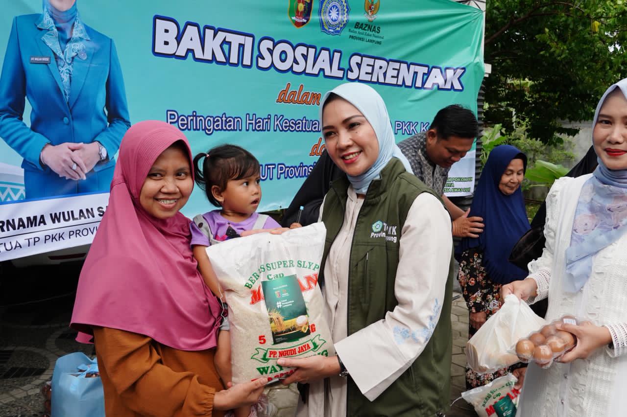 Kegiatan tersebut merupakan bagian dari rangkaian peringatan Hari Kesatuan Gerak PKK ke-54 dan Hari Ulang Tahun Provinsi Lampung ke-62, sekaligus momentum berbagi di bulan suci Ramadan.