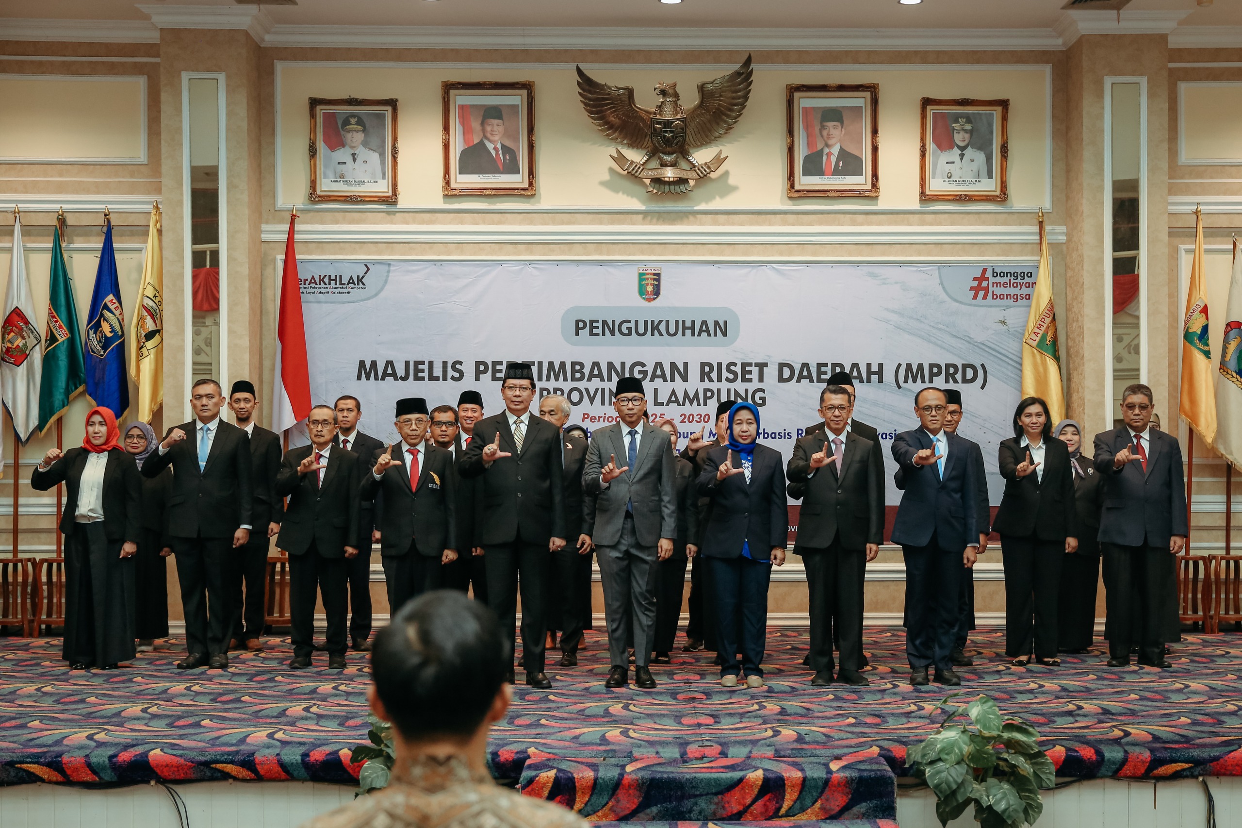 BANDARLAMPUNG —– Gubernur Lampung Rahmat Mirzani Djausal secara resmi mengukuhkan pengurus Majelis Pertimbangan Riset Daerah (MPRD) Provinsi Lampung periode 2025–2030 di Balai Keratun Lantai 3, Komplek Kantor Gubernur Lampung, Bandarlampung, Kamis (06/11/2025).