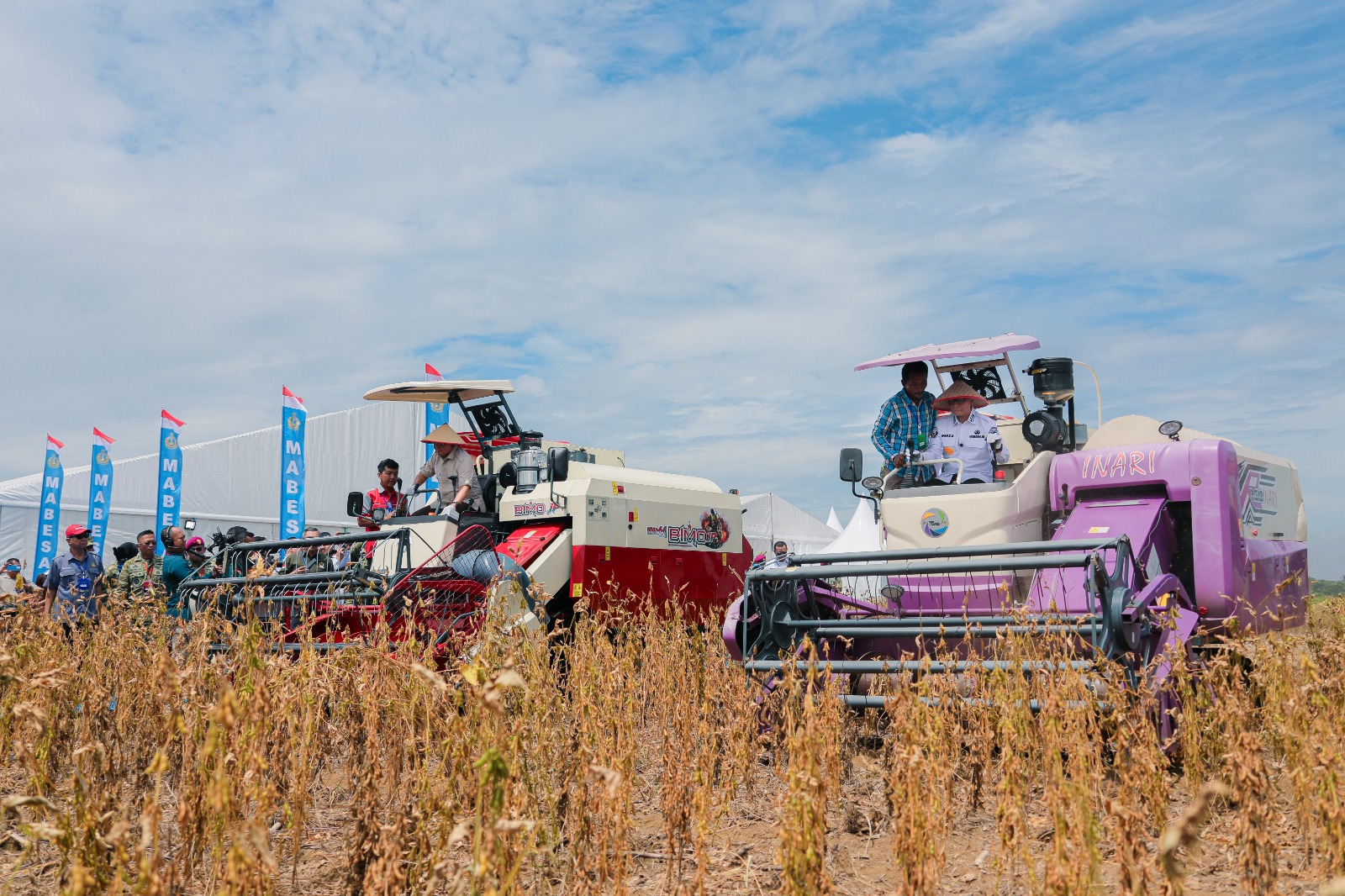 Dalam acara tersebut, Menhan Sjafrie memimpin langsung proses panen kedelai secara simbolis dengan mengendarai traktor, didampingi Panglima TNI, Kasal, Menteri Pertanian, dan Gubernur Lampung. Panen dilakukan di lahan seluas 30 hektare dengan produktivitas mencapai 4 ton per hektare.