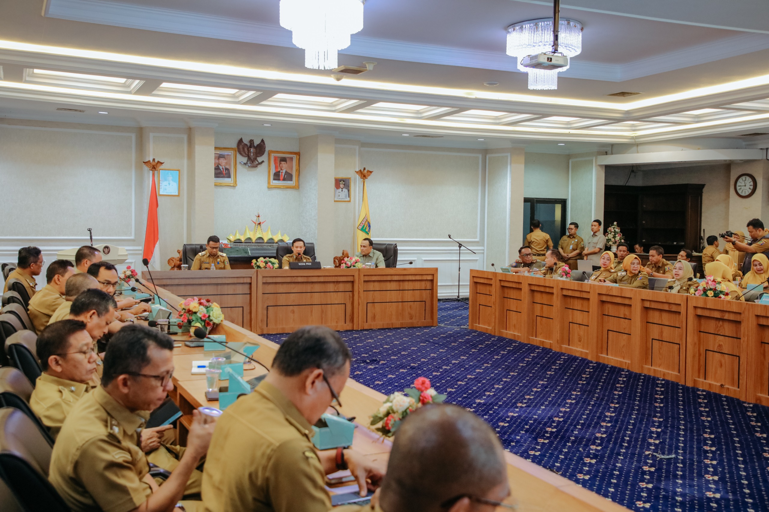 Rapat dipimpin oleh Sekretaris Daerah Provinsi Lampung Marindo Kurniawan, serta dihadiri oleh Kepala BKD Provinsi Lampung Rendi Reswandi dan Kepala BPBD Provinsi Lampung, Rudi Syawal bersama jajaran perangkat daerah. Rapat ini berlangsung di Ruang Rapat Utama, Kantor Gubernur Lampung, Bandarlampung, Selasa (02/12/2025).
