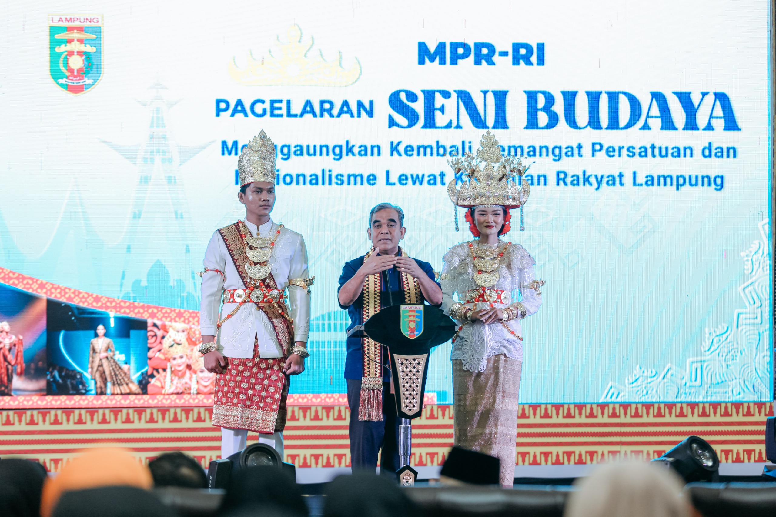 Ketua MPR RI mengapresiasi kekayaan seni dan budaya Lampung yang terus dijaga, termasuk busana adat yang ditampilkan dalam peragaan fashion show. Menurutnya, kekuatan budaya daerah seperti inilah yang memperkaya jati diri bangsa dan menjadi bagian dari kekayaan Nusantara. Ia juga menyoroti pentingnya menjaga bahasa Lampung yang kini terancam punah karena semakin jarang digunakan di rumah sebagai bahasa sehari-hari. Ia berharap tradisi, pakaian, dan bahasa Lampung tetap hidup dan dikenal generasi mendatang.