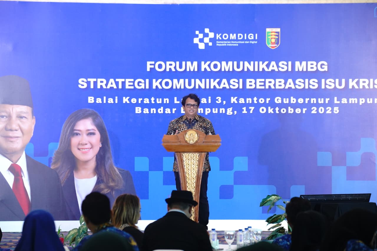 Lampung,Sumberpintar.com– Pemerintah Provinsi Lampung bersinergi bersama Kementerian Komunikasi dan Digital (Kemenkomdigi) Republik Indonesia menggelar Forum Komunikasi MBG: Strategi Komunikasi Berbasis Isu Krisis di Balai Keratun, Lantai 3 Kantor Gubernur Lampung, Jum’at (17/10/2025).