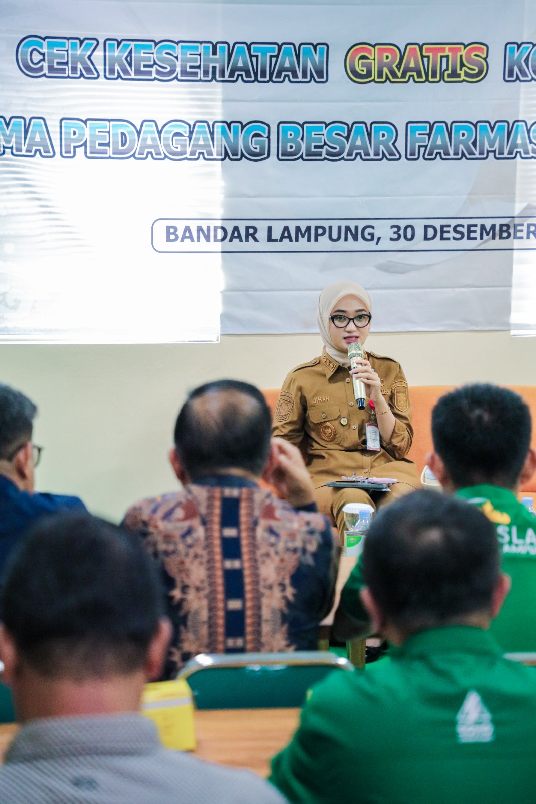 Usai meninjau langsung proses pemeriksaan kesehatan, Wakil Gubernur Lampung Jihan Nurlela berdialog dengan para pelaku usaha farmasi. Dalam dialog tersebut, komunitas PBF menyampaikan berbagai pertanyaan, permasalahan, masukan, serta klarifikasi yang langsung direspons oleh Wakil Gubernur.
