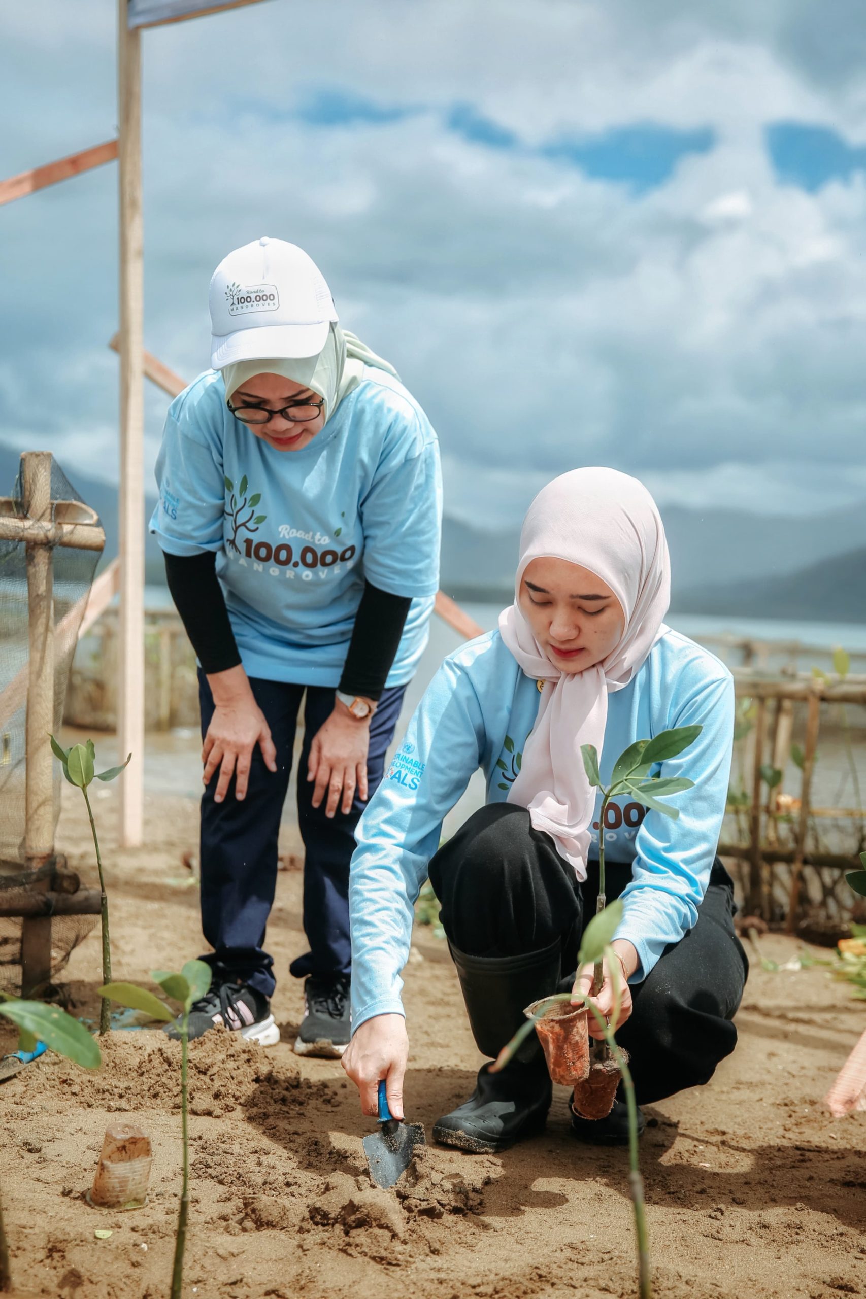 Lampung, Sumberpintar.com–Wakil Gubernur Lampung Jihan Nurlela memimpin kegiatan penanaman 25.000 bibit mangrove, di Marines Ecopark, Piabung, Pesawaran, Minggu (30/11/2025).