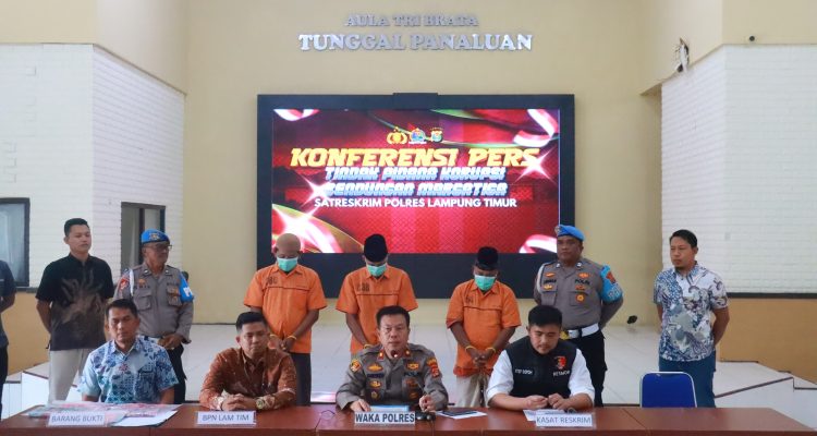 Polisi Amankan Tiga Tersangka Dugaan Korupsi Bendungan Marga Tiga Polres|October 31, 2025by Novis Pawarman LampungTimur, Sumberpintar.com– Pihak Kepolisian Satuan Reskrim Polres Lampung Timur, mengamankan 3 tersangka
