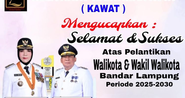 KAWAT Mengucapkan Selamat & Sukses Atas Pelantikan Walikota Dan Wakil Walikota Bandar Lampung Periode 2025-2030 Organisasi|February 20, 2025February 20, 2025by Novis Pawarman BandarLampung, Sumberpintar.com–– KAWAT Mengucapkan Selamat & Sukses Atas Pelantikan Walikota Dan Wakil