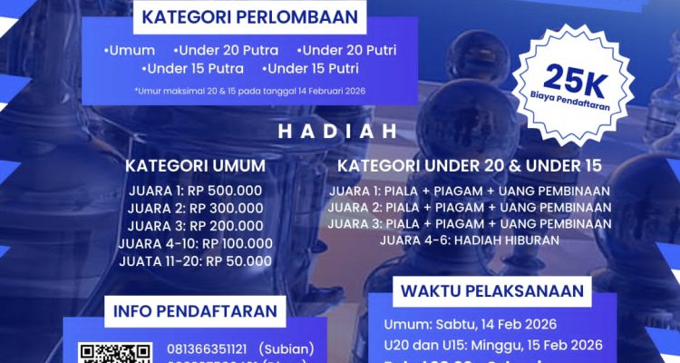 Batas Waktu Daftar Gelar Tournament Liga Percasi Kota Bandar Lampung Olahraga|February 12, 2026February 12, 2026by Novis Pawarman BandarLampung,Sumberpintar.com Tournament Liga Catur diselenggarakan Percasi Kota Bandar Lampung kerjasama dengan UKM
