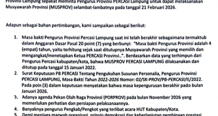 Pengurus Kabupaten/Kota Percasi Se-Lampung Adakan Sarasehan Bahas Agenda Krusial Nasional|February 20, 2026February 20, 2026by Novis Pawarman BandarLampung, Sumberpintar.com Pengurus Kabupaten / Kota Percasi se-Provinsi Lampung adakan sarasehan dikediaman